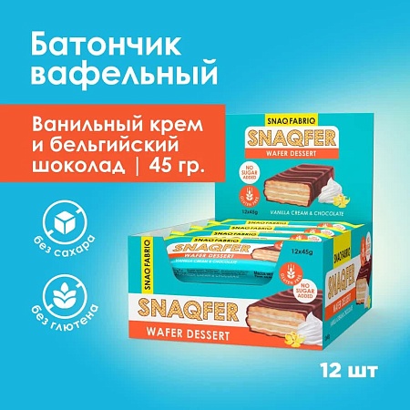 Это невероятные низкокалорийные продукты, которые с легкостью заменят сладости, содержащие сахар, такие как конфеты, шоколадки, печенье. Вафельные батончики - не просто еда для похудения или диетические продукты, это десерт, который прекрасно впишется в любое спортивное питание и пп, ведь это продукты без глютена. Это вкусняшки, которые великолепно дополнят любой подарочный набор и спорпит. Вафельные батончики с шоколадом SNAQFER выпускаются с двумя вкусами: ванильный крем с бельгийским шоколадом и фундучный крем с бельгийским шоколадом. Вафли SNAQ FABRIQ - низкоуглеводные, без опасных жиров и сахаров - внутри подсластители, клетчатка, натуральный шоколад без сахара. Попробуйте эти потрясающие вафельные батончики, насладитесь их хрустом и вкуснейшей нежной начинкой!