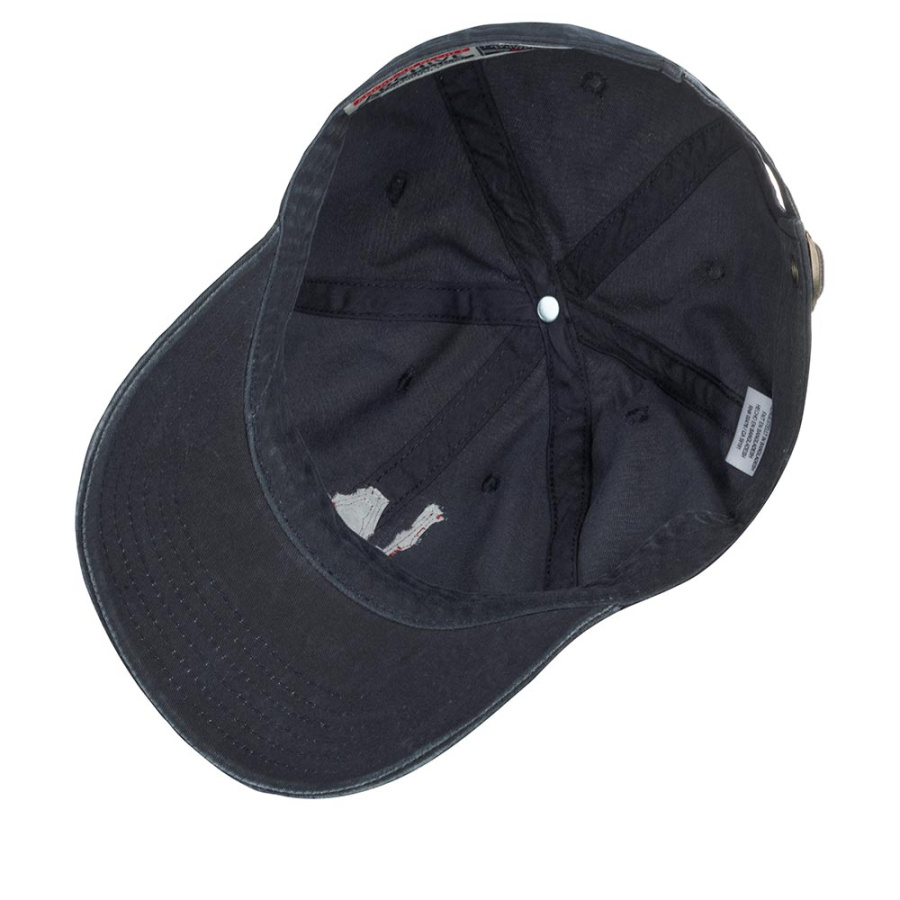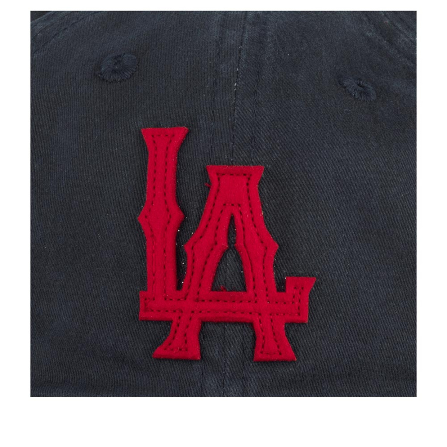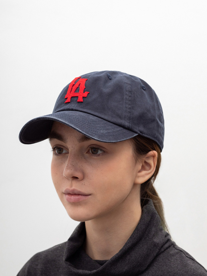 Американская бейсболка LA ANGELS из серии Archive. Бейсболка сшита из темно-синего состаренного хлопка. На переднюю панель пришиты ярко-красные буквы LA – логотип, который использовала на головных уборах бейсбольная команда LOS ANGELES DODGERS. Похожей была первая эмблема в 1961-1964 году у команды Los Angeles Angels (филиала LOS ANGELES DODGERS). Размер бейсболки регулируется с помощью текстильного ремешка с металлической пряжкой и кнопки. Для вентиляции предусмотрены люверсы. Длина козырька – 7 см, глубина бейсболки – 11 см.