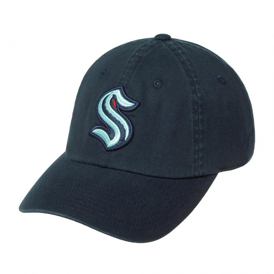 Американская бейсболка SEATTLE KRAKEN из серии Blue Line. Бейсболка сшита из хлопка. На передней панели вышит логотип американского хоккейного клуба Сиэтл Кракен, созданного в 2021 году и вступившего в НХЛ. Логотип представляет собой сине-голубую буква S, разрезаемую щупальцем Кракена – мифического морского существа, похожего на моллюска. Размер бейсболки регулируется с помощью текстильного ремешка с металлической пряжкой. Для вентиляции предусмотрены люверсы. Длина козырька – 7 см, глубина – 11 см.