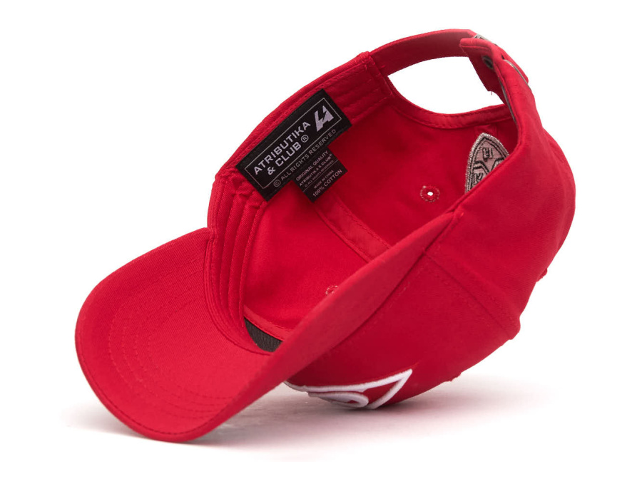Классическая бейсболка c 3D-вышивкой. Производитель: Atributika&Club. Размер: стандартный взрослый размер (обхват головы 55 - 58 см). Материал: 100% хлопок. Цвет: Красный. Глубина: 11 см. Длина козырька: 7 см. Элементы: объемная вышивка логотипа команды, металлический фиксатор с логотипом.