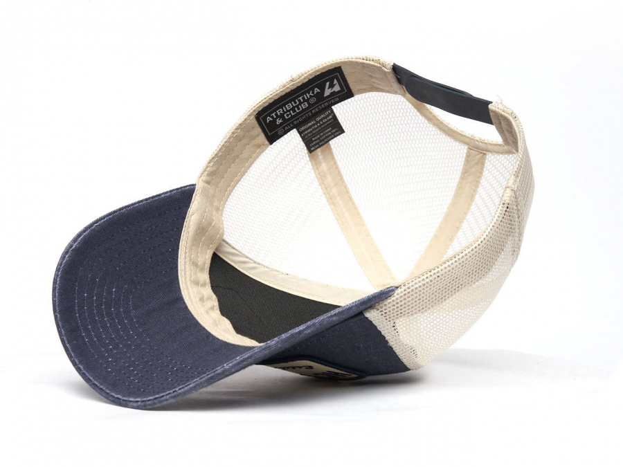 Летняя бейсболка с сеткой и пластиковым фиксатором. Производитель: Atributika&Club. Размер: стандартный взрослый размер (обхват головы 55 - 58 см). Материал: ткань: 100% хлопок, сетка: 100% полиэстер. Цвет: Синий. Глубина: 11 см. Длина козырька: 7 см. Элементы: объемная вышивка логотипа команды, пластиковый фиксатор.