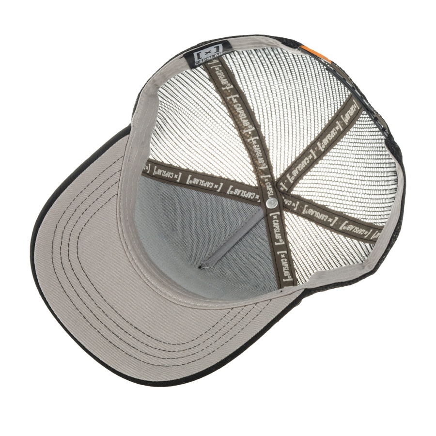 Черная бейсболка с сеточкой Graceful из коллекции Scooby-Doo от французского бренда Capslab. Переднюю твердую панель украшает нашивка с изображением улыбающегося пса по имени Скуби. Мультипликационный говорящий немецкий дог вместе с друзьями решает задачки о якобы сверхъестественных явлениях. Сбоку - тканевая нашивка с оранжевой надписью Scooby-Doo. Изнанка козырька - серая. Размер головного убора регулируется с помощью пластиковой застежки. Отличительные знаки бренда – резиновые ярлычки с логотипом и надпись Capslab на внутренних швах. Длина козырька - 6 см, глубина бейсболки - 13 см.