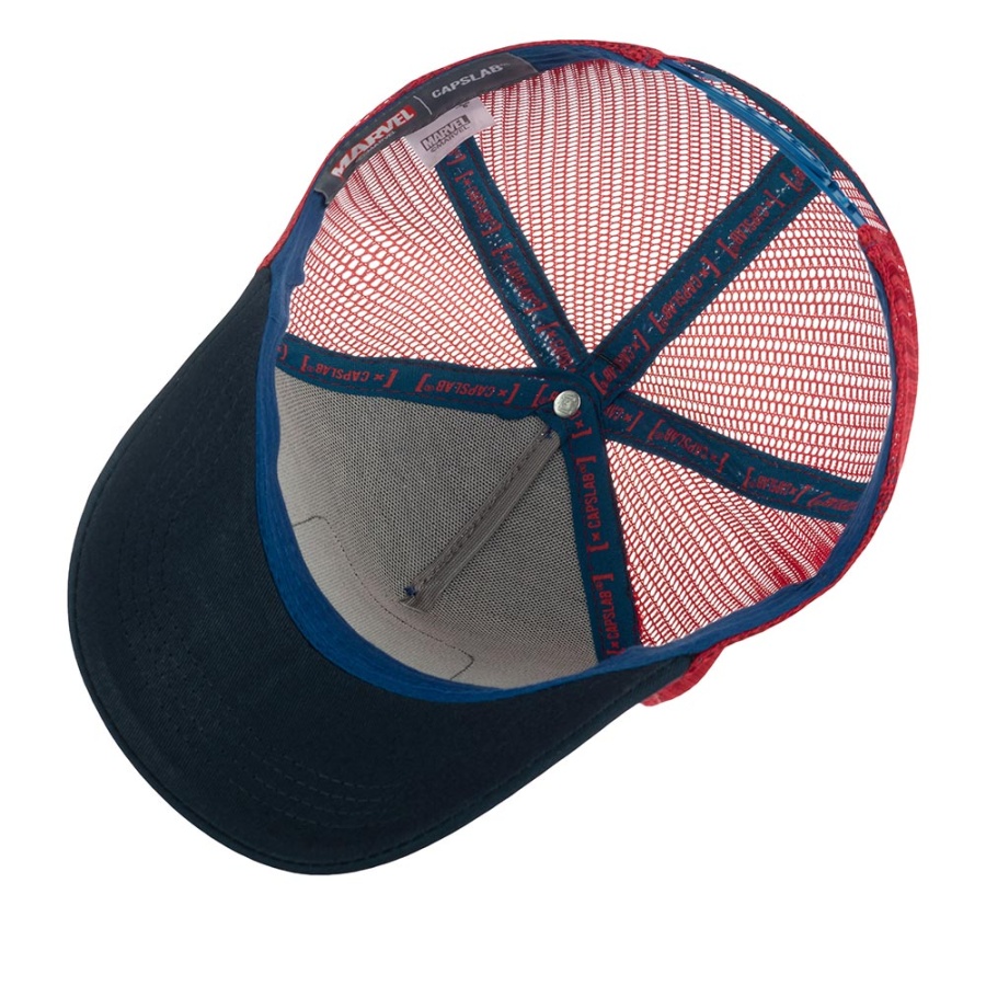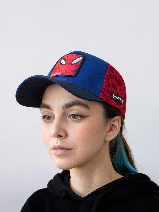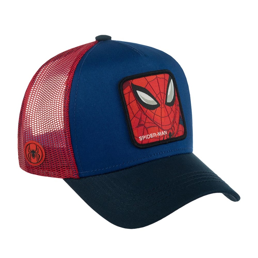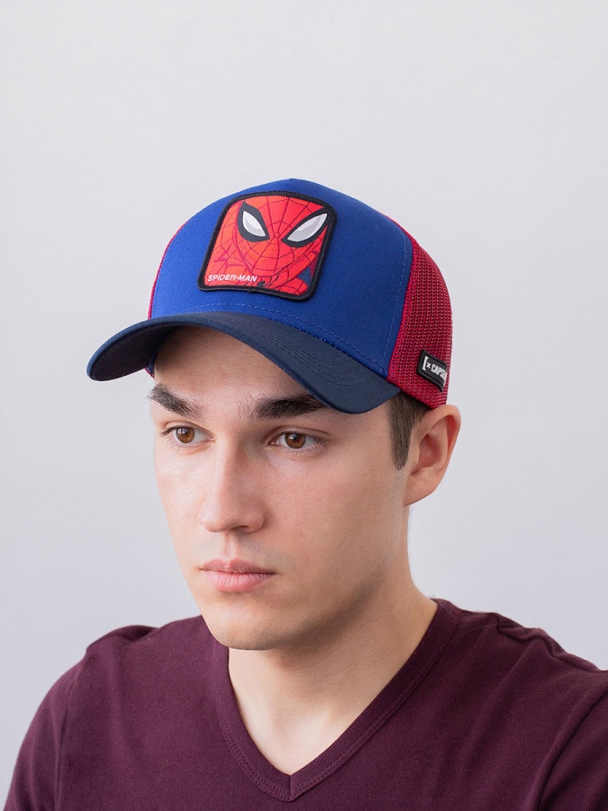 Бейсболка Spider-Man из коллекции Marvel. Хлопковая бейсболка двух оттенков синего цвета с красной сеточкой украшена нашивкой с изображением Человека-паука. Это один из самых популярных и любимых зрителями персонажей Вселенной Марвел. Ловкий и быстрый супергерой, а в обычной жизни молодой человек по имени Питер Паркер, готов бороться с преступностью, используя свои суперспособности. На сеточке сбоку изображение паука на красном фоне. Размер головного убора регулируется при помощи пластиковой застежки. Отличительные знаки бренда – резиновые ярлычки с логотипом и надпись Capslab на внутренних швах. Длина козырька - 6,5 см, глубина бейсболки - 11 см.