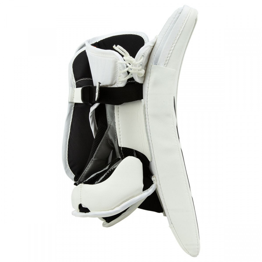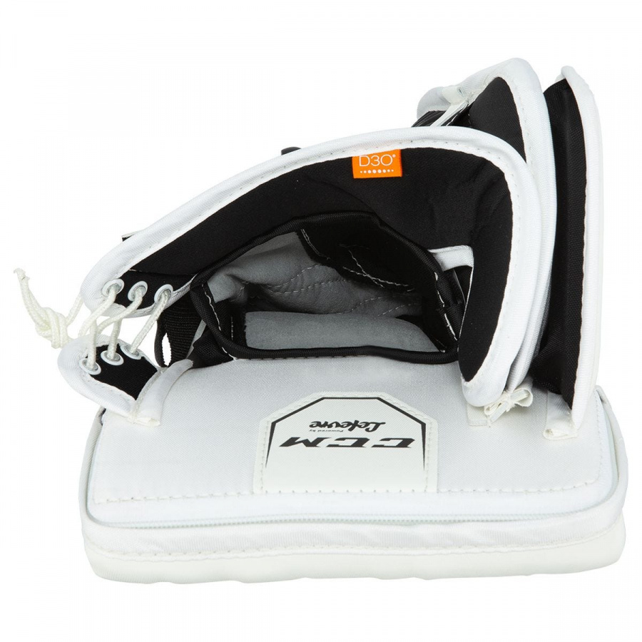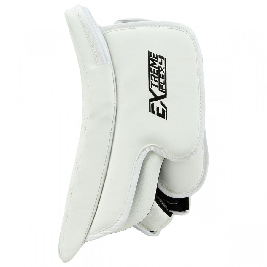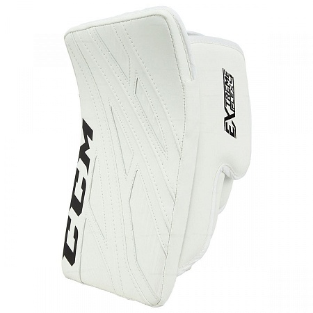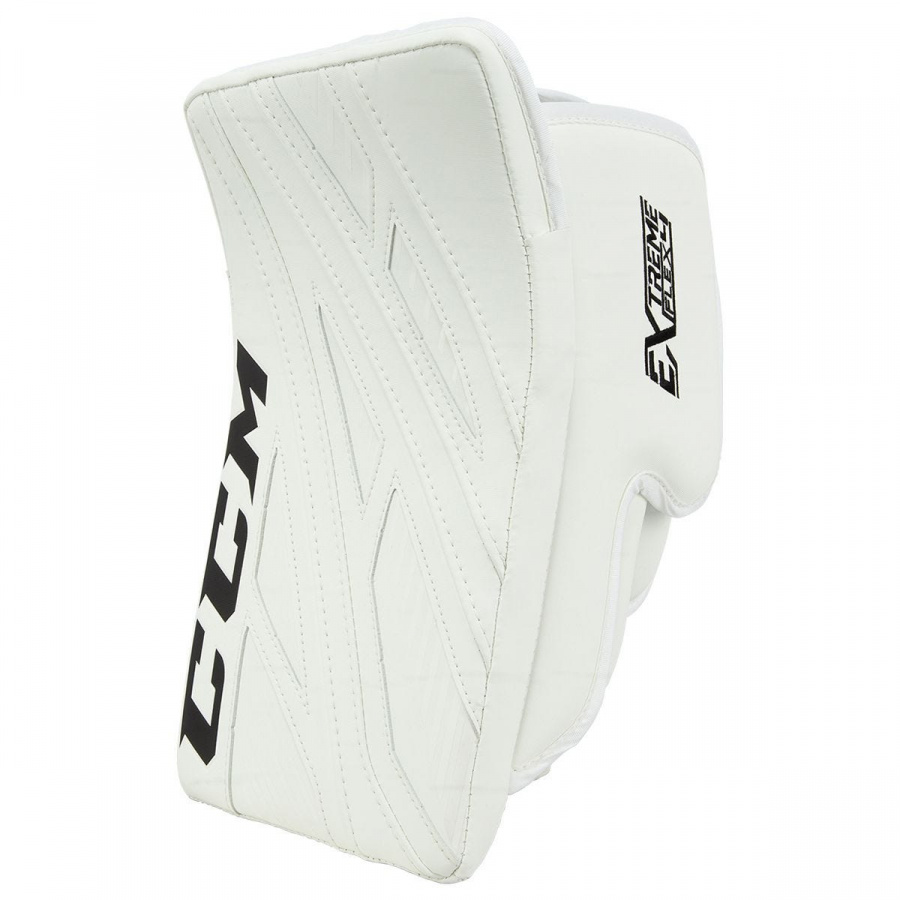 Блин вратарский профессионального уровня имеет сбалансированный, легкий дизайн для контроля отскоков. В качестве внешней отделки блина используется фирменный, синтетический материал SpeedSkin. Материалом ладони является синтетический материал Nash, который обеспечивает отличное сцепление, обладает высокой прочностью, не жертвуя комфортом и ощущением клюшки. Перчатка располагается по центру блокирующей поверхности, что делает блин отлично сбалансированным. Блокирующая поверхность, имеющая изогнутую конструкцию для лучшего контроля отскока шайбы, выполнена из пены двойной плотности и усилена пластиковой вкладкой. Боковая защита большого пальца переработана и увеличена. Защита указательного пальца выполнена с использованием умной пены D30, которая создает дополнительный уровень защиты, твердея при ударах. Блин ССМ Экстрим Флекс 4 Про имеет сегментированную и регулируемую манжету для обеспечения комфорта и естественности движения руки.