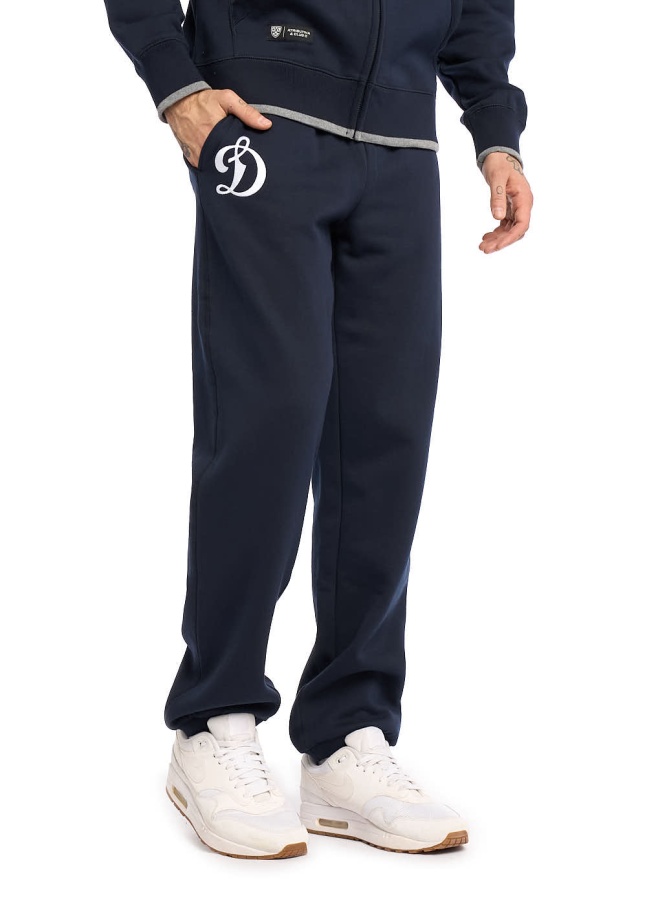 Спортивные штаны с символикой клуба. Изготовлены из плотного трикотажа с мягкой ворсистой внутренней стороной. Производитель: Atributika&Club. Детали: прямой крой, манжеты на резинке, шнурок на бедрах, карманы. Состав: 60% хлопок, 40% полиэстер Цвет: Темно-синий. Элементы: Объемная вышивка. Параметры модели: рост 185 см, обхват груди 105 см, талия 75 см, размер одежды 48. На модели надет размер: М