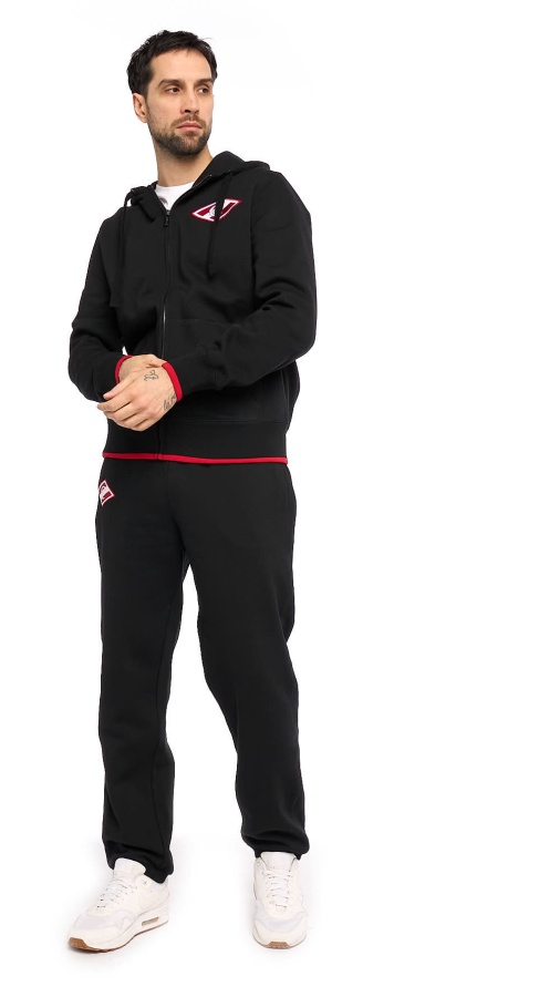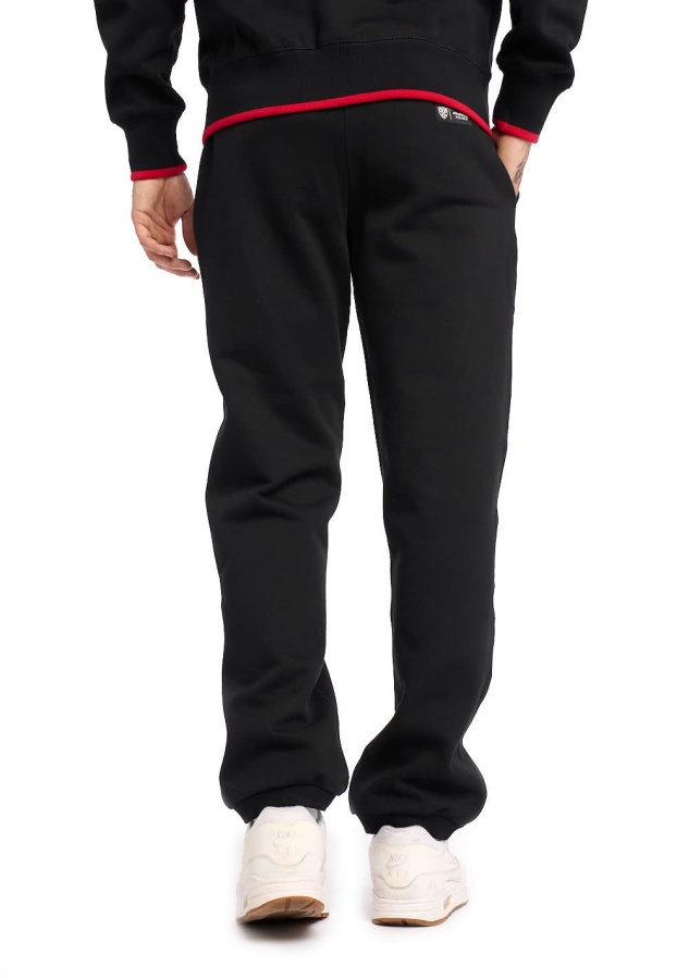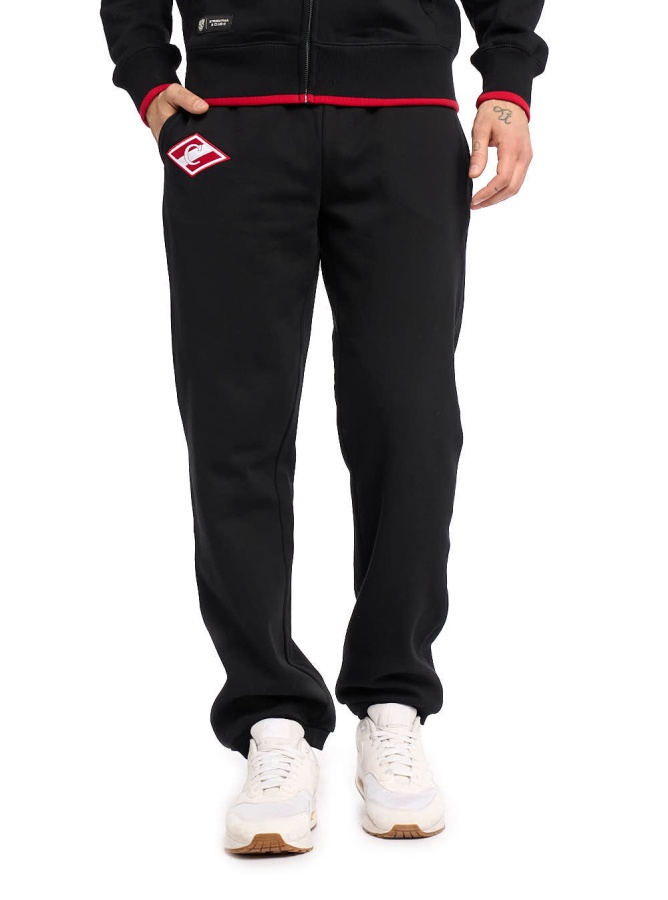 Спортивные штаны с символикой клуба. Изготовлены из плотного трикотажа с мягкой ворсистой внутренней стороной. Производитель: Atributika&Club. Детали: прямой крой, манжеты на резинке, шнурок на бедрах, карманы. Состав: 60% хлопок, 40% полиэстер Цвет: Чёрный. Элементы: Объемная вышивка. Параметры модели: рост 185 см, обхват груди 105 см, талия 75 см, размер одежды 48. На модели надет размер: М