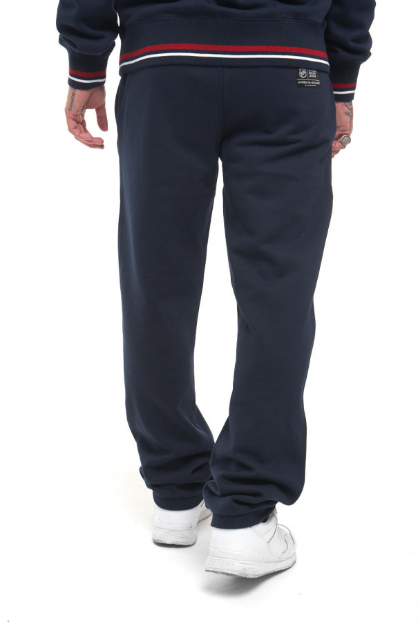 Спортивные штаны с символикой клуба. Изготовлены из плотного трикотажа с мягкой ворсистой внутренней стороной. Производитель: Atributika&Club. Детали: прямой крой, манжеты на резинке, шнурок на бедрах, карманы. Состав: 60% хлопок, 40% полиэстер Элементы: Объемная вышивка.