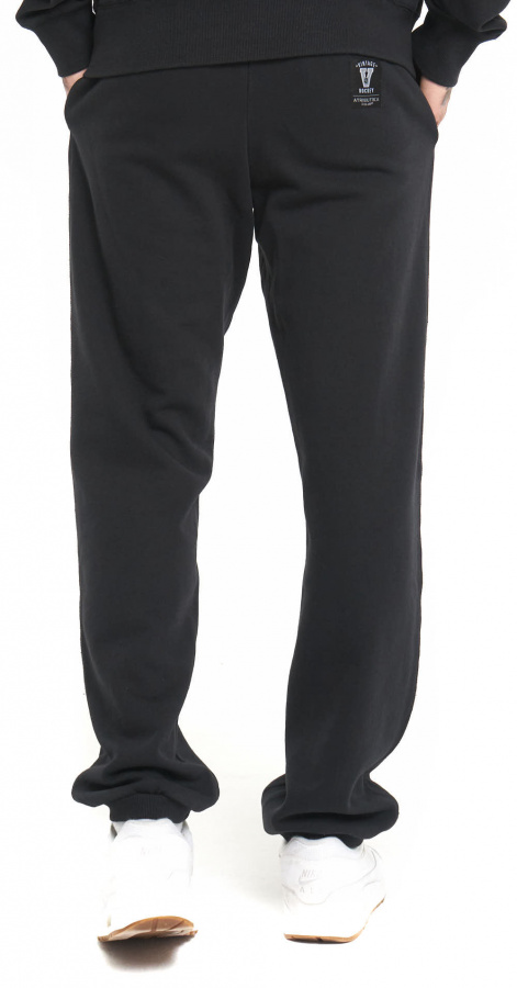 Спортивные штаны с символикой клуба. Изготовлены из плотного трикотажа с мягкой ворсистой внутренней стороной. Производитель: Atributika&Club. Детали: прямой крой, манжеты на резинке, шнурок на бедрах, карманы. Состав: 60% хлопок, 40% полиэстер Элементы: печать с винтажным эффектом.