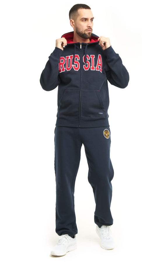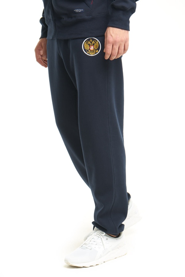 Спортивные штаны с символикой клуба. Изготовлены из плотного трикотажа с мягкой ворсистой внутренней стороной. Производитель: Atributika&Club. Детали: прямой крой, манжеты на резинке, шнурок на бедрах, карманы. Состав: 60% хлопок, 40% полиэстер Цвет: Темно-синий.
