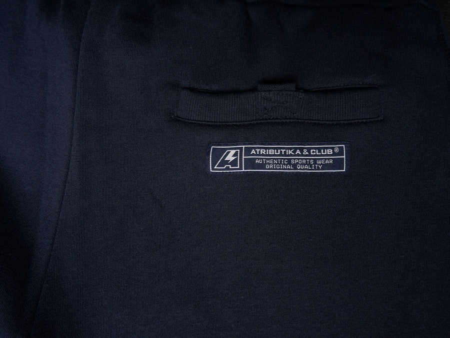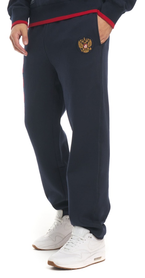 Спортивные штаны с символикой клуба. Изготовлены из плотного трикотажа с мягкой ворсистой внутренней стороной. Производитель: Atributika&Club. Детали: прямой крой, манжеты на резинке, шнурок на бедрах, карманы. Состав: 60% хлопок, 40% полиэстер Элементы: Объемная вышивка.