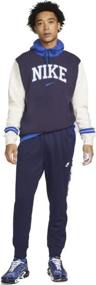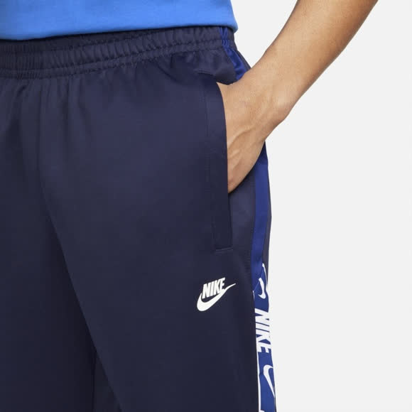 НЕПРЕВЗОЙДЕННЫЙ КОМФОРТ, ДИНАМИЧНЫЙ ОБРАЗ. Мужские повседневные спортивные штаны джоггеры Nike Sportswear Repeat изготовлены из мягкого трикотажного материала, поэтому согреют вас даже в холодную погоду. Полосы вдоль брюк с повторяющимся изображением Swoosh и принтом с надписью Nike - для создания спортивного образа. Этот продукт состоит не менее чем на 75 % из переработанных полиэфирных волокон. -Мягкий материал двойного переплетения обеспечивает тепло и комфорт. -Зауженные штанины с ребристыми манжетами придают современный обтекаемый вид. -Эластичный пояс со встроенным шнурком внутри для регулировки размера. -Карманы позволяют держать руки в тепле.