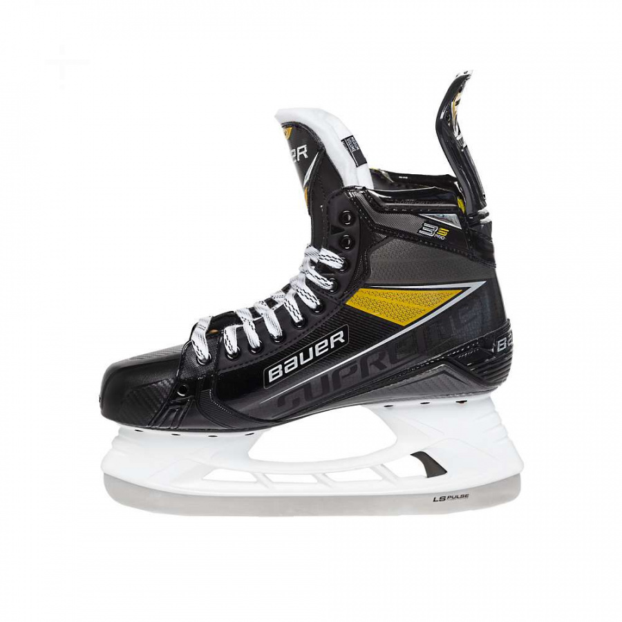 Коньки Supreme 3S Pro представлены в нашей новой размерной матрице Performance Fit System. Эти коньки подойдут игрокам профессионального уровня. Ботинок из композитного материала Curv, полностью термоформуемый, что обеспечивает исключительный комфорт и ощущение готовности к игре. Данный материал также способствует достаточной жесткости в нижней части ботинка для максимальной передачи энергии при катании. Новый угол шнуровки Power Boot Cut спроектирован для увеличения фиксации ступни и дополнительной поддержки, помогая мощнее отталкиваться во время катания. Задник Reflex Tendor Guard, язык Reflex и стандартные люверсы работают совместно, чтобы дать игроку повышенную амплитуду при сгибании ноги и совершать более мощные шаги. Коньки оснащены новейшими лезвиями TUUK LS Pulse из железа высочайшего уровня с зеркальной полировкой, что дает непревзойденный уровень скольжения по льду. Высота лезвия была увеличена для лучшего угла атаки. Также мы будем использовать специальное профилирование при производстве лезвий. Да