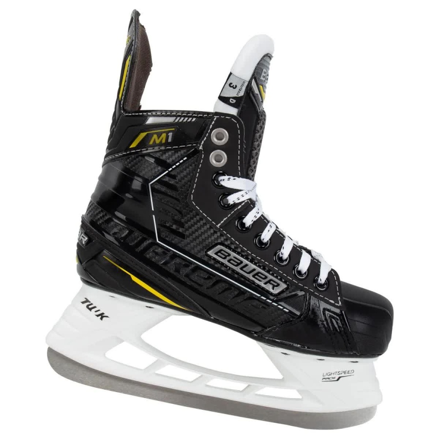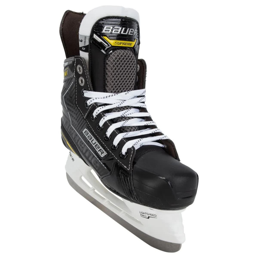 Supreme M1 — это переходный этап для игроков-любителей, начинающих инвестировать в хоккей. Благодаря обновленному 13-футовому профилю, улучшающему баланс, эти легкие коньки обеспечат комфорт и уверенность действий новых игроков благодаря элементам, взятым от коньков серии Supreme. Мы создаем наши коньки начального ценового уровня с немного более широкой колодкой и более удобными подушечками для лодыжек, чтобы начинающим игрокам было проще адаптироваться в новым конькам.