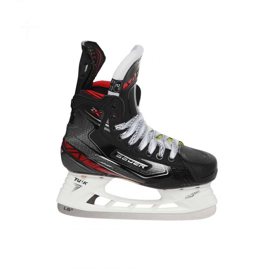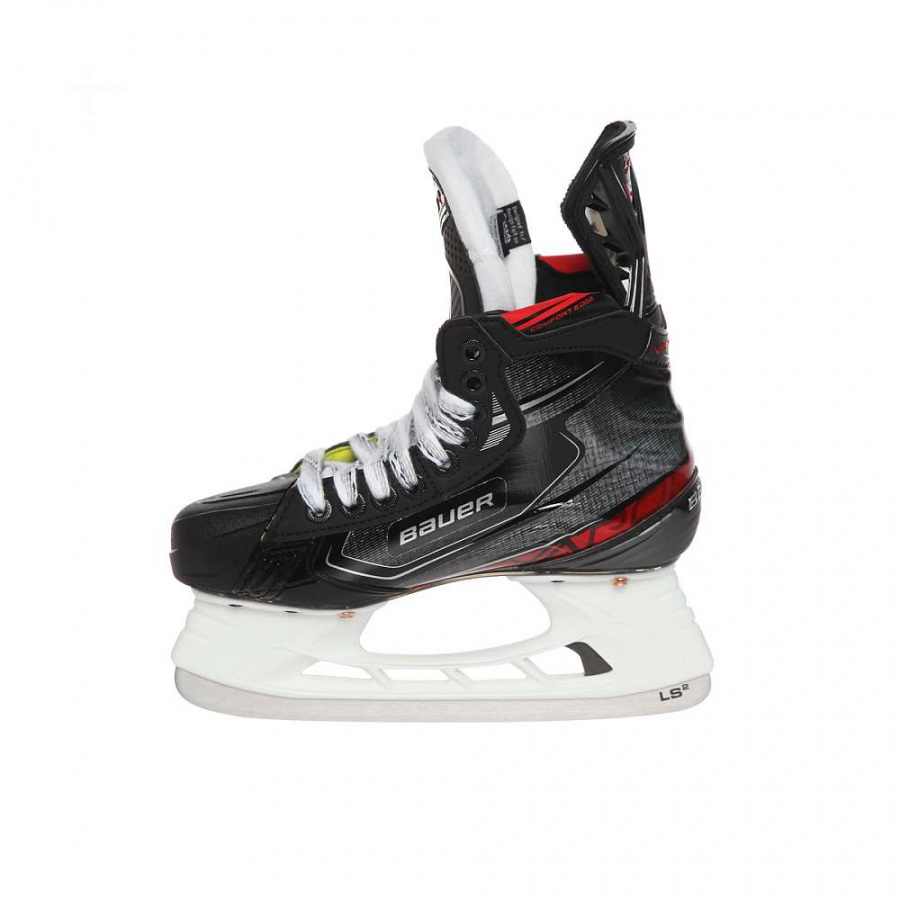 Vapor 2X - топовая модель 2019 года фирмы Bauer семейства Vapor, ценовой категории Elite. Модель Junior (юниорская). Обновленная конструкция Quarter Package обеспечит комфортную анатомическую посадку. Внешняя конструкция – формуемый ботинок в технологии Dynamic Flex и обновленном материале Curv® composite. На краях ботинка традиционные накладки Edge Comfort предотвращающие натирание. Внутренняя часть корпуса – гидрофобный синтетический материал LockFit Pro Liner с противоскользящим нанесением. Область лодыжки и пятки надежно защищена пенными вставками с функцией памяти Aerofom. Боковые части ботинка усилены поддержкой X-rib, обеспечивающей дополнительную фиксацию ноги. Монолитная шнуровка предотвращает фрагментарное сдавливание стопы. Классическая задняя стойка выполнена из материала устойчивого к механическим повреждениям. Конструкция войлочного языка имеет обновленную ассиметричную форму с дополнительной вставкой, гарантирует отличную метатарзальную защиту.