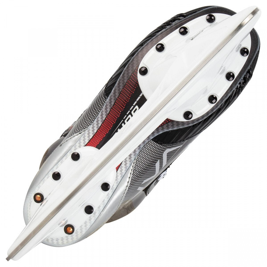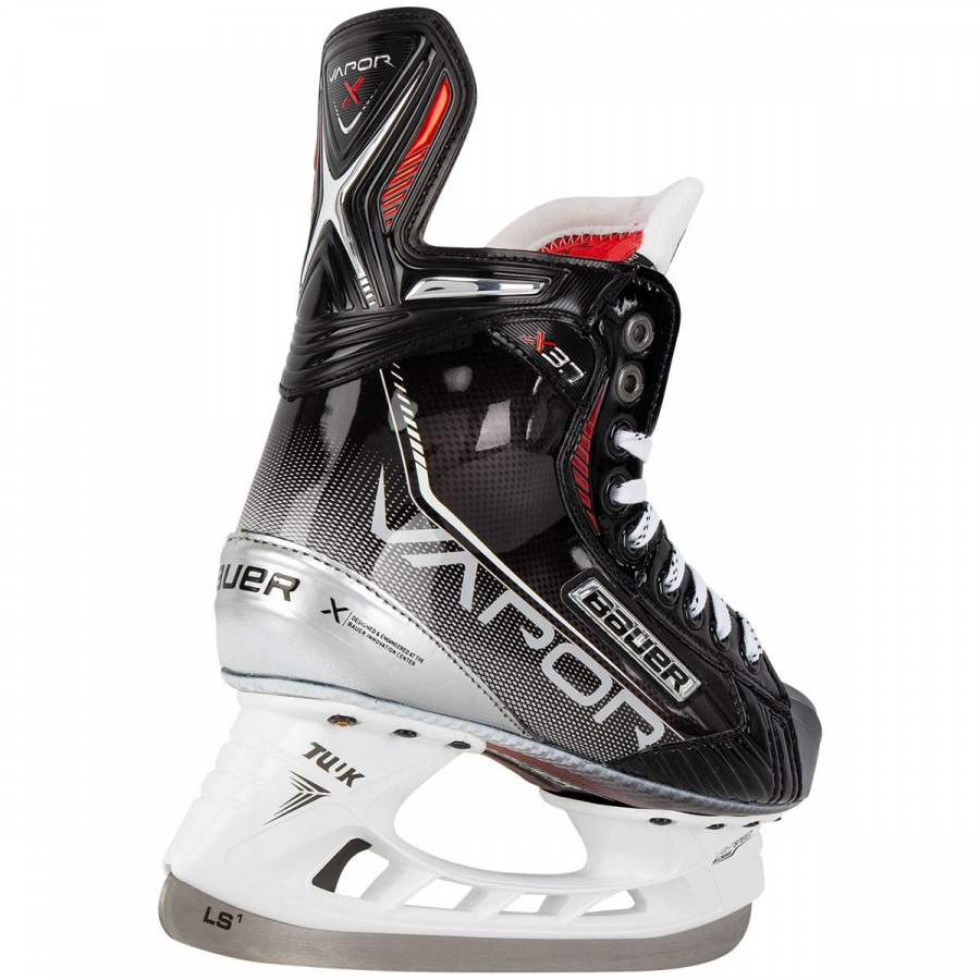 Коньки Bauer Vapor X3.7 – новинка сезона 2021/22 года. Модель создана для опытных игроков. Термоформуемый ботинок обеспечивает максимально точную посадку. Корпус выполнен из легкого материала, обладающего повышенной прочностью, что придает ботинкам оптимальную жесткость. В области лодыжки имеется мягкая набивка из пены, которая плотно фиксирует ногу и исключает натирание. Влагоотталкивающая подкладка из микрофибры помогает сохранять ноги игрока сухими на протяжении всей игры. Язычок из войлока обеспечивает надежную защиту плюсневой кости. Внутренняя стелька из вспененного материала помогает поддерживать стопу в анатомически правильном положении. Стаканы Tuuk Lightspeed Pro II, которые обеспечивают лучшую стабильность, устойчивость и контроль. Лезвия TUUK LS 1 выполнены из нержавеющей стали.