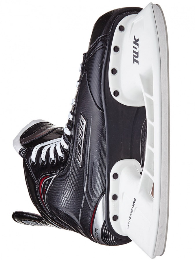 Коньки Bauer Vapor X400 предназначены для игроков начального уровня. Эти коньки представляют достаточную поддержку и долговечность для начинающих игроков. X400 оснащен доработанной технологией True Form Tech PU, которая является более жесткой и устойчивой к истиранию, чем в предыдущих моделях. Корпус ботинка изготовлен из термоформовочного материала, что позволит подогнать коньки под особенности строения ваших ног. Двух составной язык с войлоком плотностью 30 oz защитит голеностоп от травм. В коньках установлены стаканы TUUK Lightspeed Pro и лезвия TUUK из нержавеющей стали.