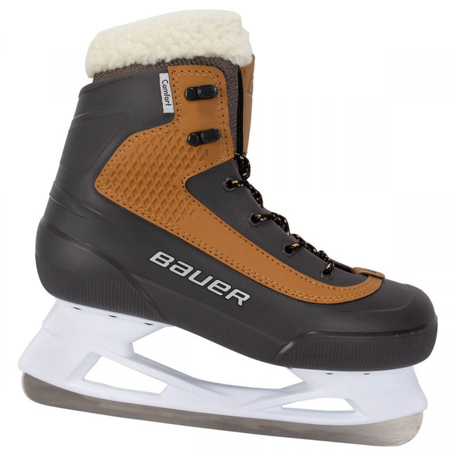 Прогулочные коньки BAUER Rec Ice Unisex Whistler. Вариация прогулочных коньков, которая одинаково комфортно подойдет как для женской, так и для мужской ноги. Модель относится к начальному уровню, а значит на данных коньках смогут кататься новички, которые первый раз встают на лёд. Эргономичная форма коньков обеспечивает надежную и плотную посадку с обеспечением поддержки, благодаря чему катание будет легким, комфортным и безопасным. Внутренняя подкладка отталкивает влагу и сохраняет тепло, благодаря чему ноги будут оставаться сухими и не будут мерзнуть. Пенный материал подкладки дополнительно обеспечивает комфорт в области стопы и щиколотки. От попадания льда и снега данную модель защищает искусственный мех сверху ботинка. Классическая шнуровочная система проста в использование и гарантирует надежную фиксацию ботинка на ноге, а также позволяет подобрать оптимальную шнуровку для более комфортной и индивидуальной посадки под каждую ногу.