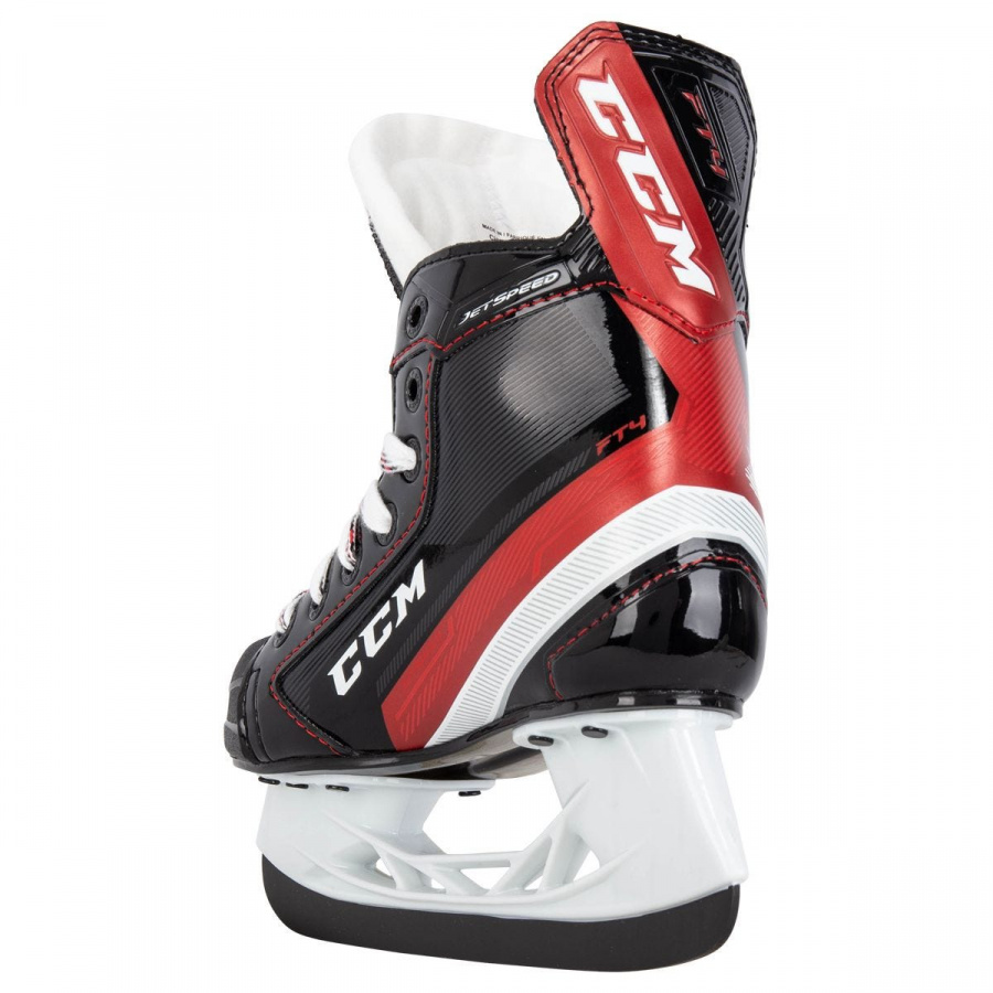 Коньки детские CCM JetSpeed FT4 YT — новинка сезона 2021 года. Модель кардинально отличается от своих предшественников. Ботинок изготовлен из премиального композитного материала RocketFrame уровня NHL и имеет индекс жесткости 180. Измененная графика стала более узнаваемой и подчеркивает индивидуальность игрока. Новый асимметричный носок способствует плотной посадке, благодаря которой игроки получают прямую передачу энергии в каждом шаге. Производитель увеличил количество пены, что позволило убрать лишнее пространство и сделать ботинок более комфортным внутри. Лезвия StepSteel повышенной износостойкости для более долгой эксплуатации. Быстрые, легкие коньки созданы для скоростных и маневренных игроков!