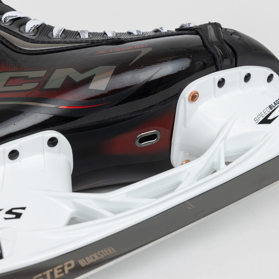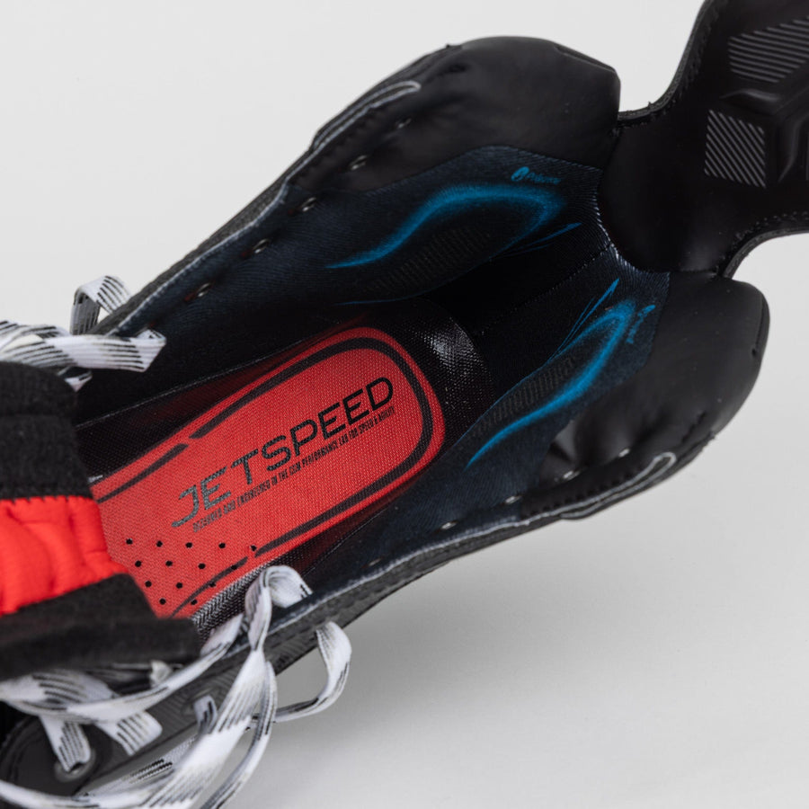 Линейка коньков Jetspeed представляет новинку 2025 года — модель FT8 PRO. Это топовое решение для профессиональных хоккеистов, стремящихся к максимальной скорости, манёвренности и комфорту. Монолитная конструкция ONE-PIECE BOOT SPEED обеспечивает идеальную посадку и позволяет быстро менять направление движения. Увеличенный угол наклона обеспечивает более агрессивную стойку и позволяет хоккеистам мгновенно реагировать на изменения ситуации на льду. Посадка GAME READY FIT 3.0 оптимизирована для анатомической формы стопы, надёжно фиксируя пятку и плотно облегая переднюю часть. Это обеспечивает максимальный комфорт и динамичность. Эксклюзивный материал FORS™ COMPOSITE изготовлен из высококачественного полипропилена с сердечником JETSPEED STIFFNESS PROFILE. Это улучшает соотношение веса и жёсткости. Внутренний материал TOTALDRI PRO эффективно отводит влагу, сохраняя ноги сухими и облегчая вес коньков. Антимикробная обработка Polygiene предотвращает появление неприятного запаха и бактерий. Многослойная бесшовная конструкция с плотными накладками на лодыжки из пены ADPT создаёт комфортную и плотную внутреннюю поверхность. Надёжное положение стопы предотвращает усталость даже при длительных нагрузках. Язык ADPT с формованной сердцевиной из пены и новым ребристым центральным каналом обеспечивает плотное прилегание и комфорт. Конструкция шнуровки FlexMotion позволяет максимально сгибать стопу вперёд. Индивидуальная адаптация - термоформуемый ботинок с захватом, а также формованная стелька с эффектом памяти ADPT обеспечивают максимальную передачу энергии. Стакан с системой SPEEDBLADE XS упрощает быструю замену лезвий. Лезвия STEP BlackSteel +4мм выполнены из стали высшего качества с алмазоподобным углеродным покрытием DLC, что гарантирует безупречное скольжение и долгий срок службы. Приобретая КОНЬКИ ХОККЕЙНЫЕ CCM JETSPEED FT8 PRO SR в нашем интернет-магазине, вы получаете не только профессиональные коньки, но и оригинальный продукт! Получи удовольствие от игры!