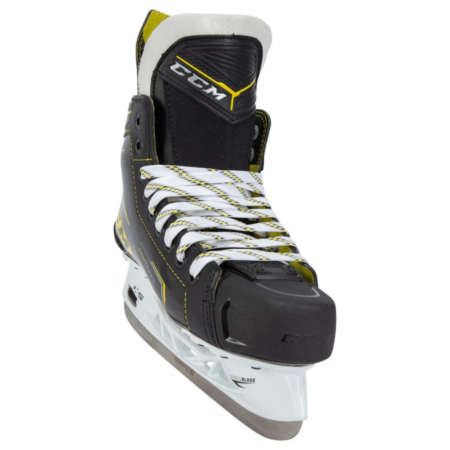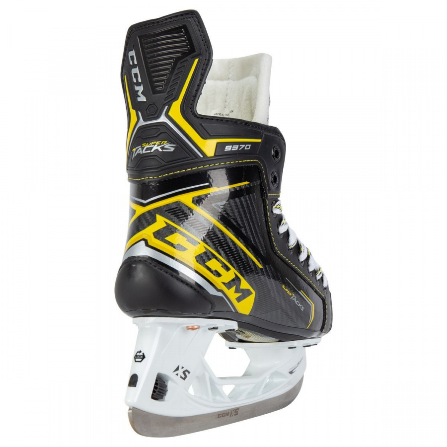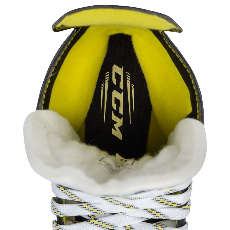 Коньки CCM Super Tacks 9370 INT предназначены для игры на среднем уровне. Ботинок выполнен по технологии MetaFrame, которая обеспечивает комфорт и повышенную жесткость. Внутренний материал HD MICROFIBER делает коньки удобными и долговечными. Новый сменный язык из войлока 7-мм отлично защищает от ударов. В коньках используется стелька Ortholite. Стакан SPEEDBLADE XS обеспечивает возможность быстрой смены лезвия.