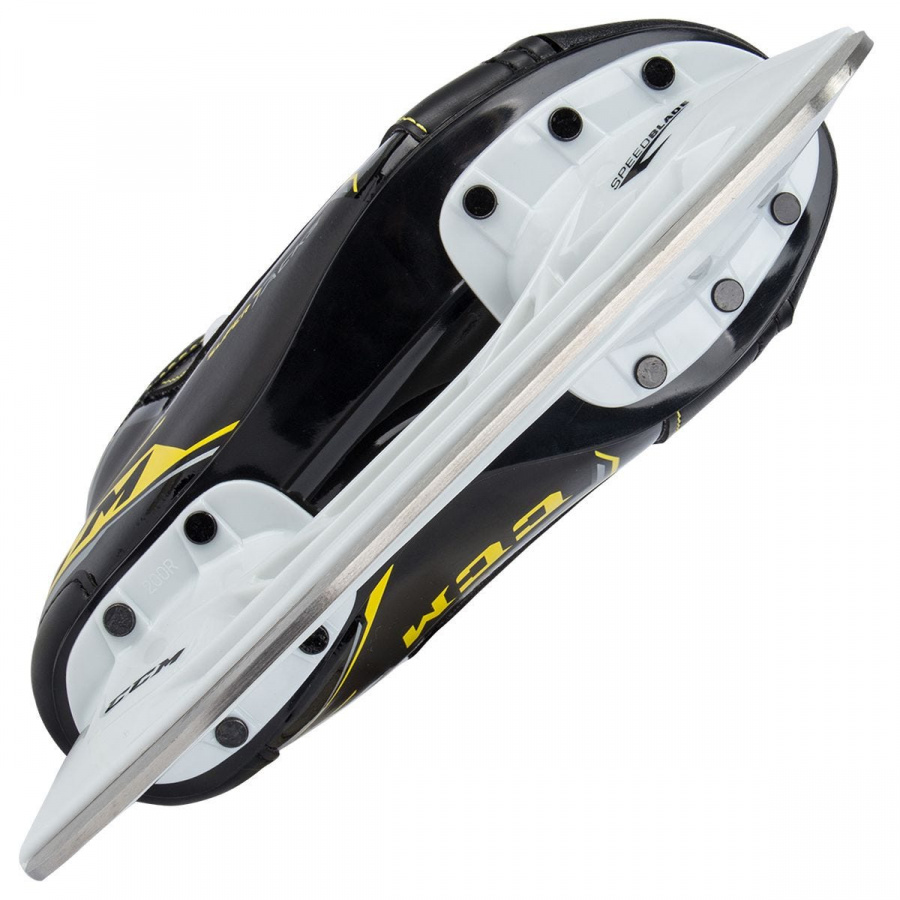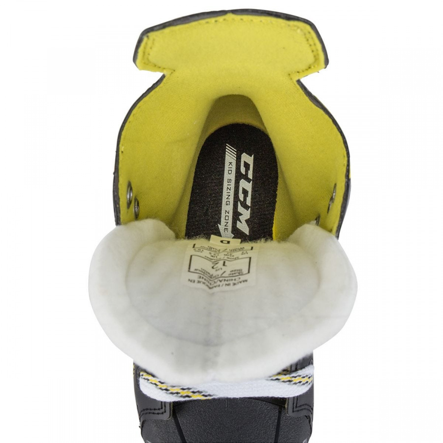 Коньки детские CCM Super Tacks 9380 YT – полупрофессиональная модель линейки TACKS 2020 года. Эргономичный ботинок из легкого композитного материала RFM COMPOSITE выполнен по технологии METAFRAME. Ботинок имеет анатомическую посадку, полностью термоформованный для индивидуальной подгонки. Сменный язык из войлока толщиной 7 мм, с укрепленным слоем для защиты от давления шнурков. Мягкие вставки SMOOTH CONTOUR PRO по канту ботинка исключают натирание. Износостойкая подкладка HD MICROFIBER эффективно отводит влагу и обеспечивает надежную посадку. Вставки MULTI DENSITY MEMORY FOAM из пены с эффектом памяти. Стельки CCM ORTHOLITE для поддержки стопы. Стакан SPEEDBLADE XS способствует быстрой замене лезвия, а лезвие XS STAINLESS повышенной износостойкости для более долгой эксплуатации.