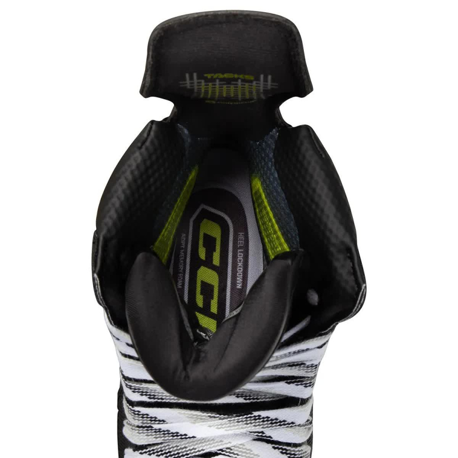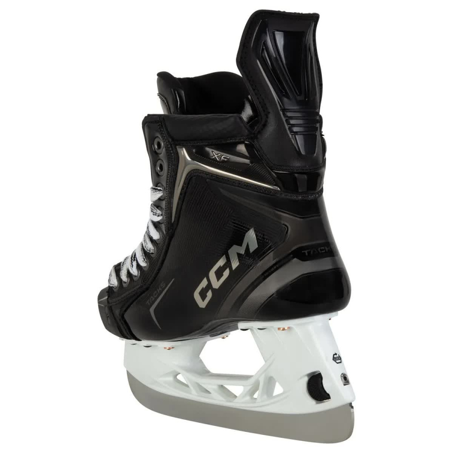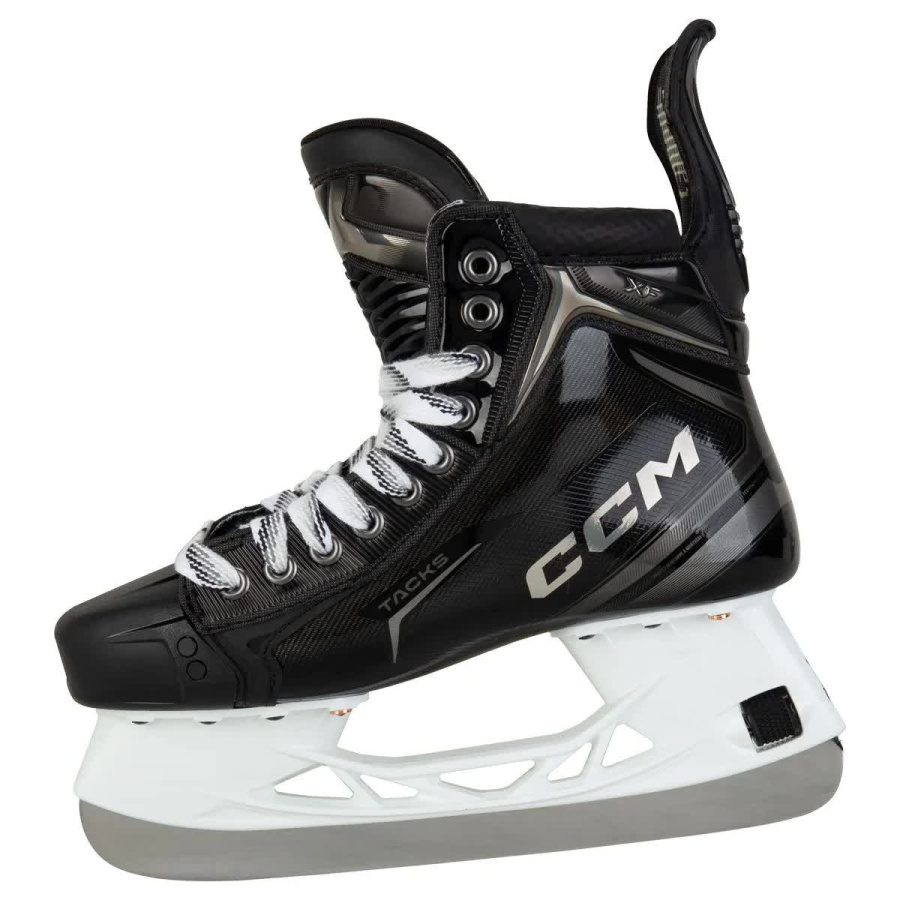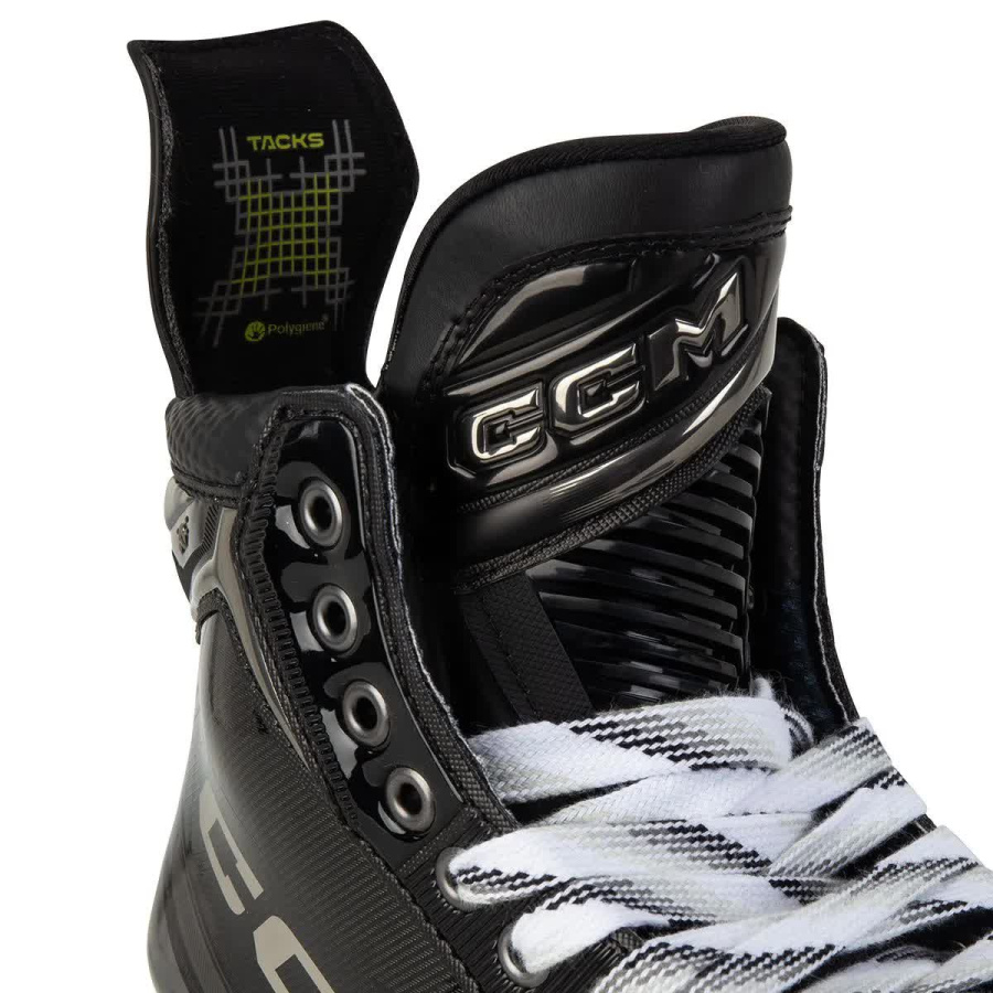Новинка 2024 года от CCM — модель коньков TACKS XF. Это профессиональная предтоповая модель с монолитным ботинком из композита RFM и обновлённым хромированным дизайном. Коньки оснащены технологиями высшего уровня, что делает их оптимальным выбором. Монолитный ботинок ONE-PIECE BOOT без швов, клея и подошвы обеспечивает максимальную передачу энергии и ускорение на льду, изготовлен из премиального композитного материала RocketFrame. Индекс жёсткости составляет 195, что на 5 единиц выше, чем у предыдущей модели. Гибкий задник FLEX TENDON 3.0 обеспечивает плотное прилегание, лучшую передачу энергии, защиту и удобство. Подкладка TotalDri PRO быстро отводит лишнюю влагу от стоп, предотвращая появление неприятного запаха и сохраняя свежесть внутри ботинка. Многослойная конструкция с пеной ADAPT создаёт максимальный комфорт и плотную посадку в области лодыжки. Узкая зона фиксации пятки надёжно удерживает ногу. Лёгкая стелька CCM ORTHOLITE ULTRA поддерживает стопу и обеспечивает удобную посадку. Термоформовка ботинка позволяет адаптировать его под форму ноги для максимального комфорта. Продвинутые стаканы SPEEDBLADE XS облегчают замену лезвий. Обновлённый механизм надёжно фиксирует лезвие, обеспечивая прямую передачу энергии.На данной модели установлены лезвия STEP V-STEEL увеличенной толщины 4 мм изготовлено из полированной высококачественной стали. Язык ботинка выполнен из 7-миллиметрового чёрного войлока и имеет формованную пенную основу, которая идеально облегает ногу, обеспечивая комфорт. Встроенная пена EVA добавляет дополнительную защиту и улучшает наклон вперёд. Сделайте шаг свободным и уверенным вместе с CCM TACKS XF INT!