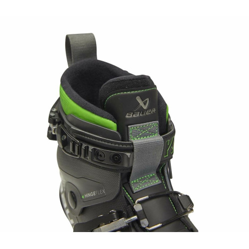 Верхний ремень POWER фиксирует щиколотку, обеспечивая гибкость HINGEFLEX, а нижняя пряжка оттягивает пятку назад, обеспечивая превосходную фиксацию. Подкладка имеет формованные накладки для долговечности и имеет вставку с замком. Носок дополнительно защищен пеноматериалом ULTRASTOP от Ultalon. Нижняя оболочка представляет собой цельную часть и не требует подошвы. Мы добавили платформу с пластиной внутри, чтобы усилить толчок в стиле "Баттерфляй", и теперь больше нет необходимости в половинном размере или ширине, поскольку эти коньки подходят для полных и половинных размеров с C-EEE с возможностью термоформовки.