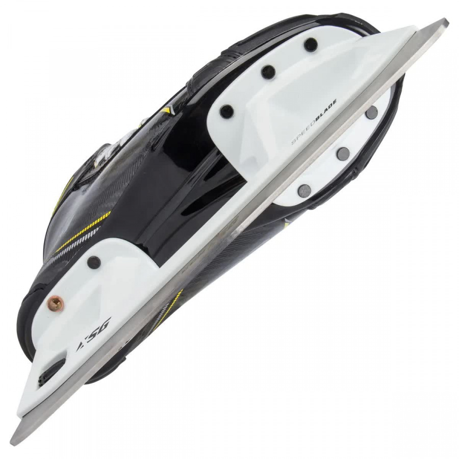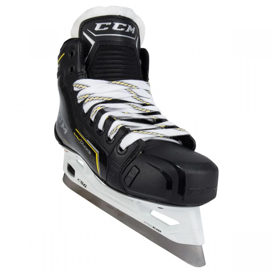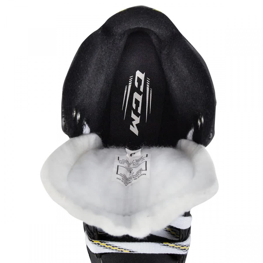 Уровень коньков: полупрофессиональная модель линейки TACKS 2020 года. · Ботинок: эргономичный ботинок, изготовленный по технологии METAFRAME из композитного материала SYNTHETIC COMPOSITE, выполнен по стандартной конструкции (ботинок + подошва + стакан). Легкая и прочная подошва ботинка с системой влагоотведения. · Внутреннее наполнение: Износостойкая подкладка из микрофибры HD MICROFIBER отводит влагу, обеспечивает комфорт и долговечность. Стельки CCM ORTHOLITE® с превосходной поддержкой стопы. · Посадка: анатомическая. Посадка по форме в передней части стопы, пятке и лодыжке. · Термоформовка: — · Стакан: SPEEDBLADE XS с возможностью быстрой смены лезвия. · Лезвие: CCM XS из нержавеющей стали. · Язык: XS TONGUE - сменный язык из войлока толщиной 7мм с укрепленным слоем для комфорта и дополнительной защиты. · Вес: 906гр. (9D)