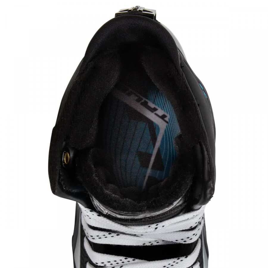 Цельный монолитный ботинок из углеродного волокна с технологией FIBERSHIELD благодаря которой коньки можно полностью отформовать и получить ощущение индивидуальных коньков, изготовленных под вашу ногу. Для лучшей защиты используется технология TRUESHELL TECH которая полностью защищает мыс ботинка от сильных бросков.
