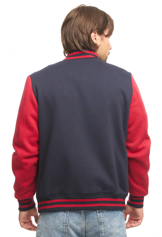 Куртка-бомбер. Производитель: Atributika&Club. Состав: верх: 65% полиэстер, 35% хлопок, подкладка: 100% полиэстер Детали: воротник-стойка, планка на кнопках, два кармана на кнопках, полосатые эластичные манжеты, тонкая гладкая подкладка.