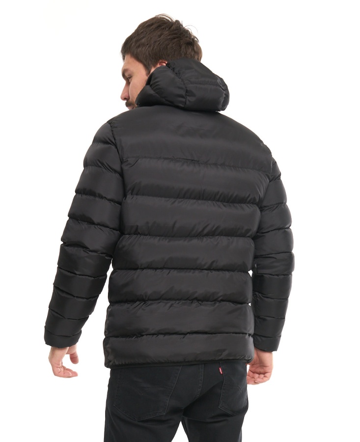 Стеганая утепленная куртка. Прямой крой с толстым слоем синтепонового утеплителя, логотип выполнен в виде полимерного шеврона. Производитель: Atributika&Club. Состав: верх: 100% полиэстер, подкладка: 100% полиэстер, наполнитель: 100% полиэстер. Цвет: Чёрный. Детали: неотстегивающийся капюшон, два боковых кармана и один карман внутри, текстильная подкладка. На модели надет размер: L Параметры модели: Рост 188 см, обхват груди 106 см, талия 81 см, размер одежды 50