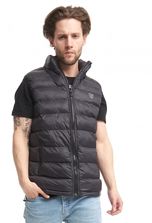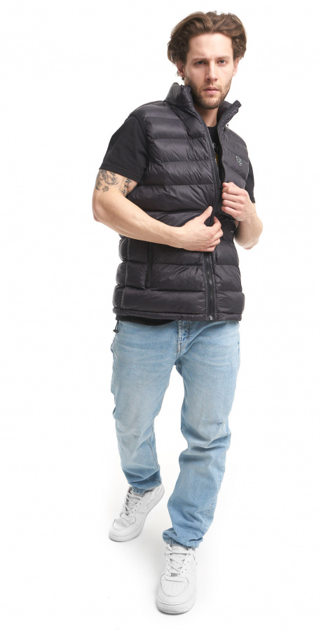 Жилет выполнен из водонепроницаемой нейлоновой ткани и утеплён искусственным наполнителем, логотип выполнен в виде полимерного шеврона и нанесён на левую полочку изделия. Производитель: Atributika&Club. Состав: верх: 100% нейлон, подкладка: 100% нейлон, наполнитель: 100% полиэстер. Детали: Модель прямого кроя, с горизонтальной стежкой и воротником-стойкой, застёгивается на молнию, имеет 2 боковых кармана на застёжках-молниях, снабжена кулиской для регулировки ширины низа.