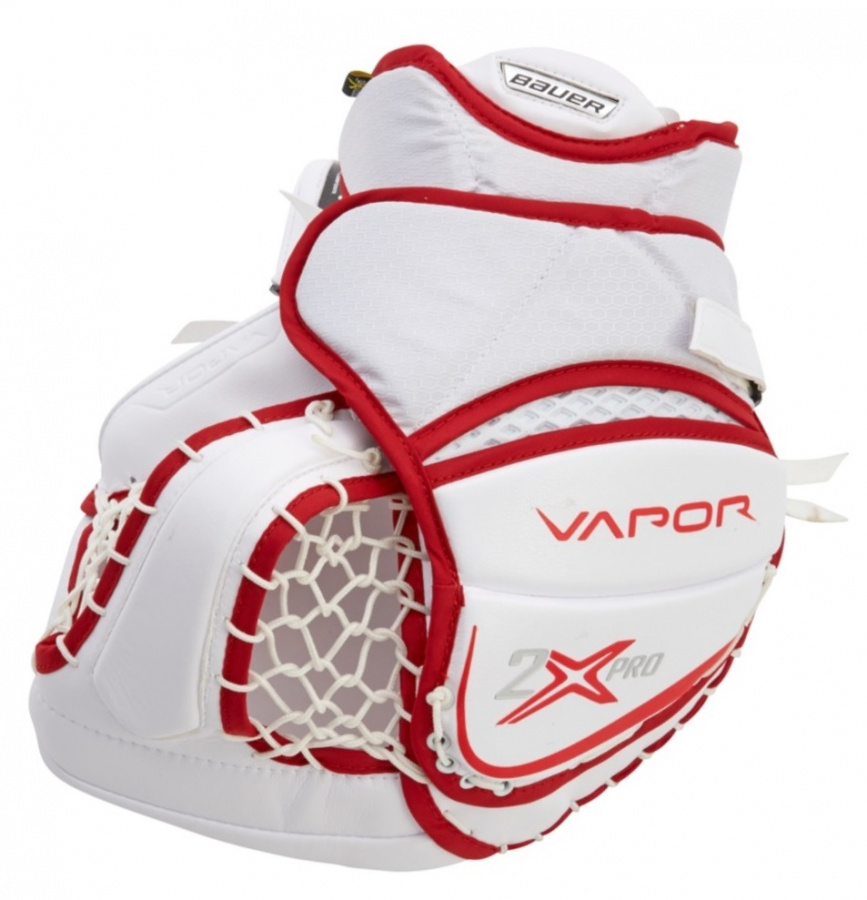 Ловушка вратарская BAUER VAPOR 2X PRO S19 SR профессиональная модель сезона 2019 года, одна из самых совершенных и технологически продвинутых вратарских перчаток. При изготовлении внешней отделки используется новый материал CatchLite, который обладает великолепной прочностью и долговечностью, что делает ловушку очень надежной. Угол сгиба ловушки в 60 градусов позволяет удобно осуществлять хватательные движения рукой, облегчает закрытие ловушки при необходимости и дает ощущение естественности. Новый карман Т-образной формы имеет максимально возможную глубину, что позволяет лучше видеть попавшую в ловушку шайбу и лучше зафиксировать ее внутри кармана. Область ладони защищена вставкой, выполненной из композитного материала Curv, и слоем пены Poron XRD. Внутренний вкладыш Thermo Core способствует созданию дополнительной защиты, быстрому удалению влаги из внутреннего пространства и обеспечивает комфорт для руки. Обратная сторона руки защищена элементами с внутренним наполнением из вспененного материала Aerolite, к