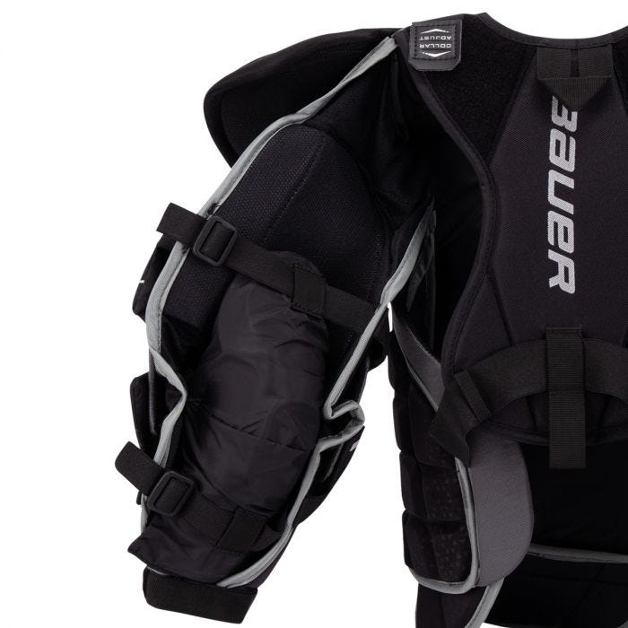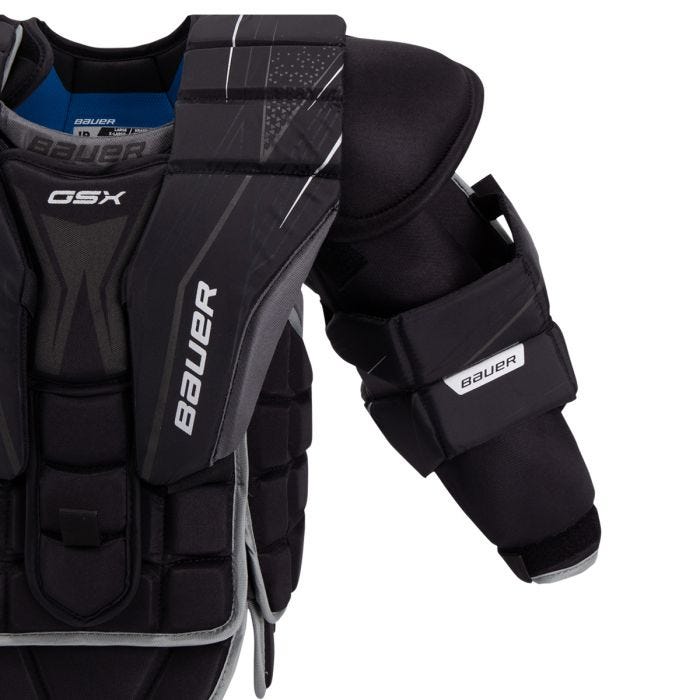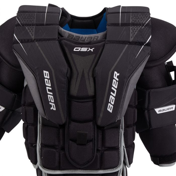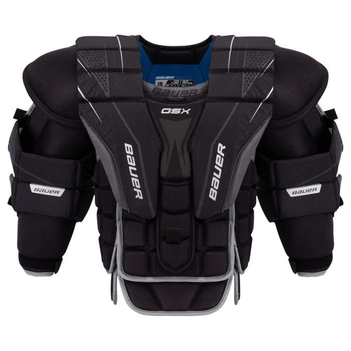Нагрудник Bauer GSX предназначен для начинающего уровня, обладает хорошей защитой и мобильностью. Является самым настраиваемым нагрудником на рынке в данном ценновом сегменте.