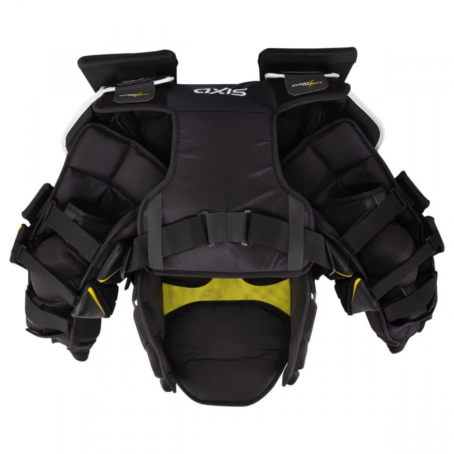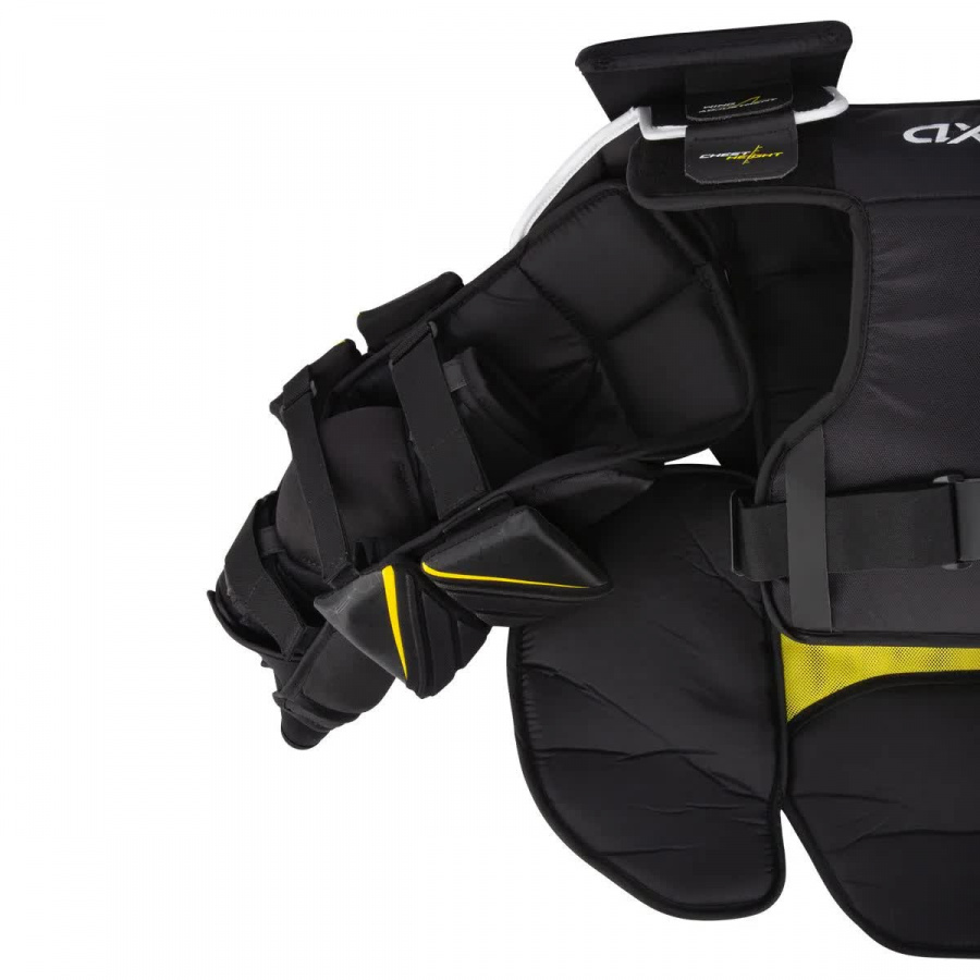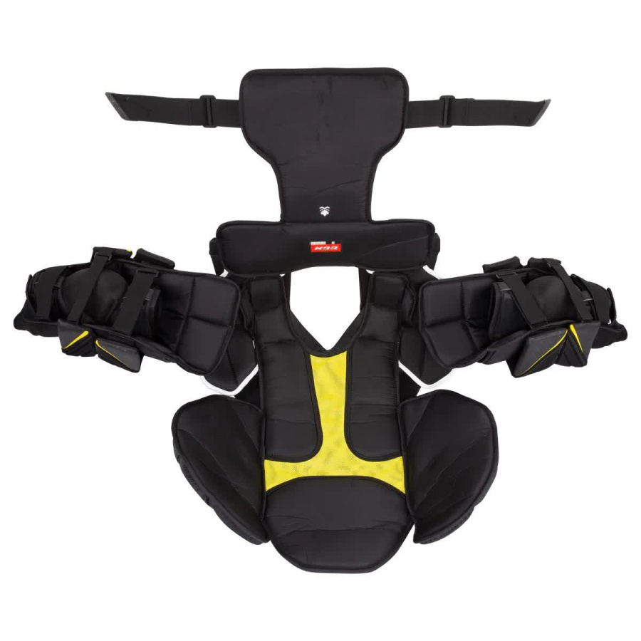Модель обладает легкостью и обеспечивает высокий уровень защиты и свободу движения. Передняя панель нагрудника имеет мультисегментную конструкцию, которая позволяет вратарю свободно и легко сгибаться и двигаться. Область грудины защищена вставкой, которая выполнена из пены PE, обладающей высокой ударной прочностью и отличной амортизацией. В качестве амортизирующего наполнения во всех сегментах защиты, закрывающих тело вратаря со всех сторон, используется пена EPP, которая эффективно противодействует механическим нагрузкам, устойчива к разрушению, быстро восстанавливает свою первоначальную форму.