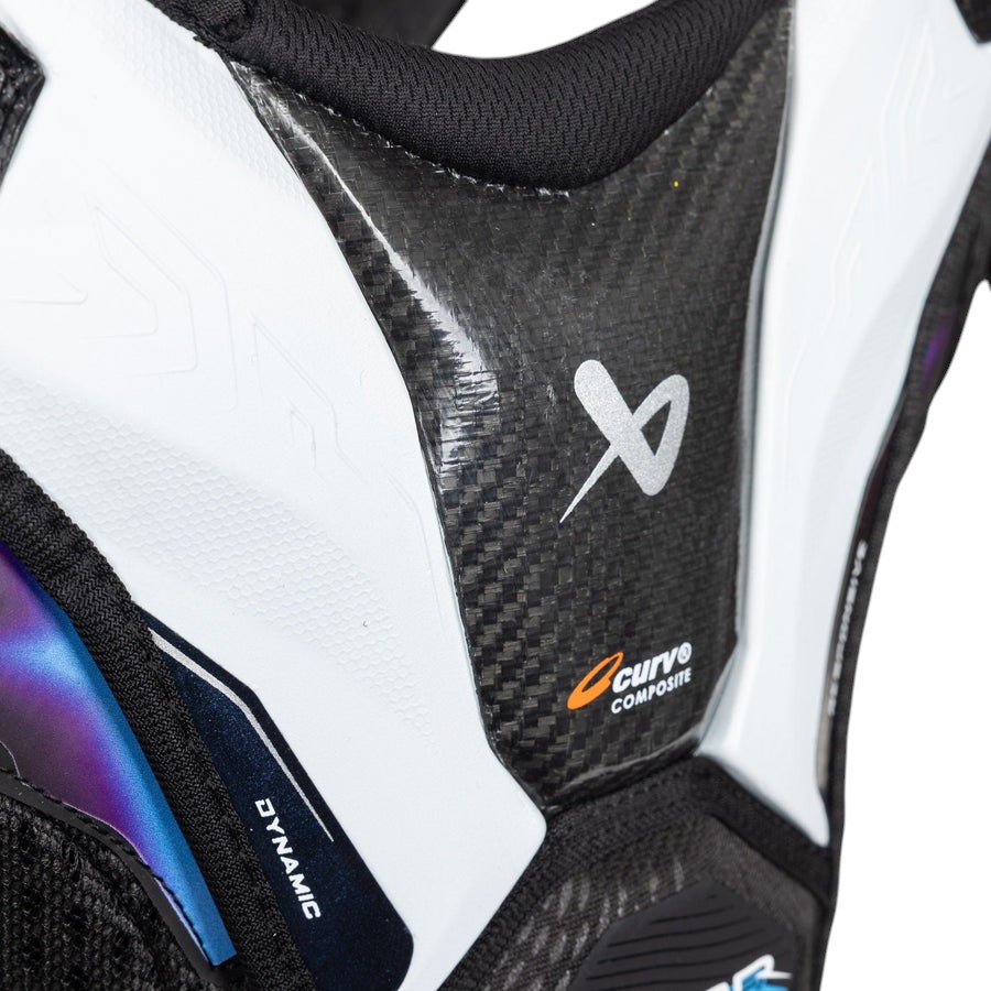 Пробивай оборону и ускользай с топовым нагрудником VAPOR FLYLITE! Созданным для легкости и надежной защиты. Гибкие материалы идеально облегают тело, обеспечивая свободу движений и быструю реакцию на любые ситуации. При жестких столкновениях усиленные пеноматериалы и композитные вставки в области плеч и бицепсов эффективно гасят удары. Легкий вес и максимальная эффективность — благодаря сочетанию ультралегкой пены DEFENSE CLOUD TECH и композита CURV®, вы получаете идеальный баланс защиты и подвижности. Для защиты ключицы используется литой полиэтилен (РЕ). Композитный материал EXO-LITE CURV®в области бицепса, придает наплечнику легкий вес и великолепные защитные свойства. Погружайтесь в игру, не жертвуя ни безопасностью, ни скоростью! Основные преимущества Надежная посадка — предварительно изогнутые ребра жесткости спереди и сзади обеспечивают плотную фиксацию нагрудника даже при сильных ударах и падениях. Вам больше не нужно беспокоиться о том, что экипировка сместится в самый важный момент. Полная свобода движений — раздельный дизайн жилета и независимые наплечники из очень легкой пены AEROLITE 2.0 с вставками CONNEKTOR и DEFENSE CLOUD TECH позволяют играть без ограничений. Технология Thermocore Zero в нагруднике Flylite, разработана для обеспечения комфорта игрока и эффективного отведения влаги, чтобы тело оставалось сухим. Двигайтесь уверенно и действуйте максимально эффективно с нагрудником BAUER VAPOR FLYLITE SR S25! Не упустите возможность ознакомится с полным ассортиментом новинок от ведущего бренда и заказать на нашем сайте. Новая эра VAPOR уже в Нашей Игре!