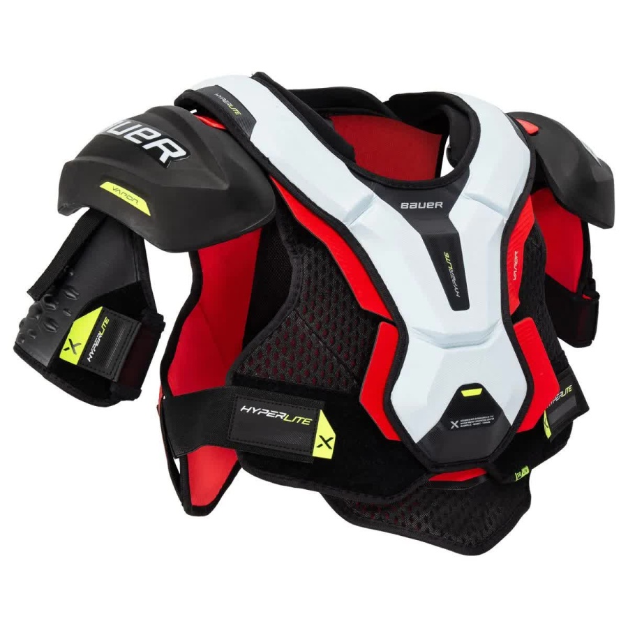 Нагрудник Bauer S22 Vapor HyperLite топовая модель линейки Vapor 2022 года Плавающий протектор грудины, усиленный пеной SHOCKLite. Это повышает защиту от порезов без дополнительного веса в этой важной области. Интегрированы ребра жесткости, которые защищают вас по всему периметру, оставаясь при этом воздухопроницаемыми. Одной из самых важных зон защиты является позвоночник, и компания Bauer включила в комплект плавающую защиту позвоночника со вставками из пены SHOCKLite для усиления и защиты этой зоны. На плечах размещены накладки Aerolite 2.0 Shoulder Caps, которые помогают поглощать удары при столкновениях, таких как удары о борта или столкновения с другими игроками. Вокруг бицепса находится цельный кожный протектор EXO-Lite со встроенным рукавом. Модернизируя подкладку, Bauer использует новую подкладку THERMOCORE ZERO. Эта подкладка обработана для удаления пота и запахов, обеспечивая ощущение свежести на протяжении всей игры. Кроме того, она помогает сохранить прохладу во время катания.