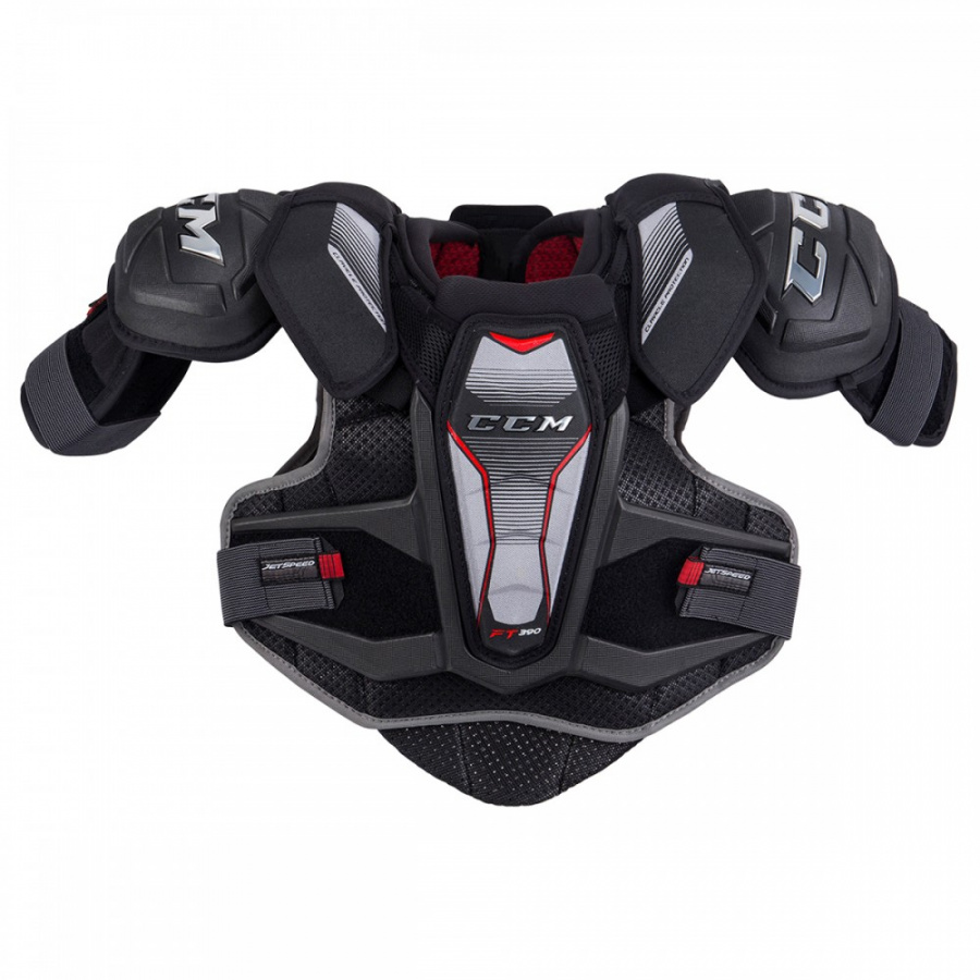Наплечник CCM JETSPEED FT390, профессиональная модель линейки CCM 2018 года. Главная особенность данной модели в ее легкости и мобильности. Защита плеч выполнена из пены EVA, которая имеет очень легкий вес и хорошие защитные свойства. Защита груди и позвоночника имеет анатомические, формованные вставки PE SHELLS. В качестве внутренней подкладки используется DRYFOAM , которая эффективно отталкивает влагу.