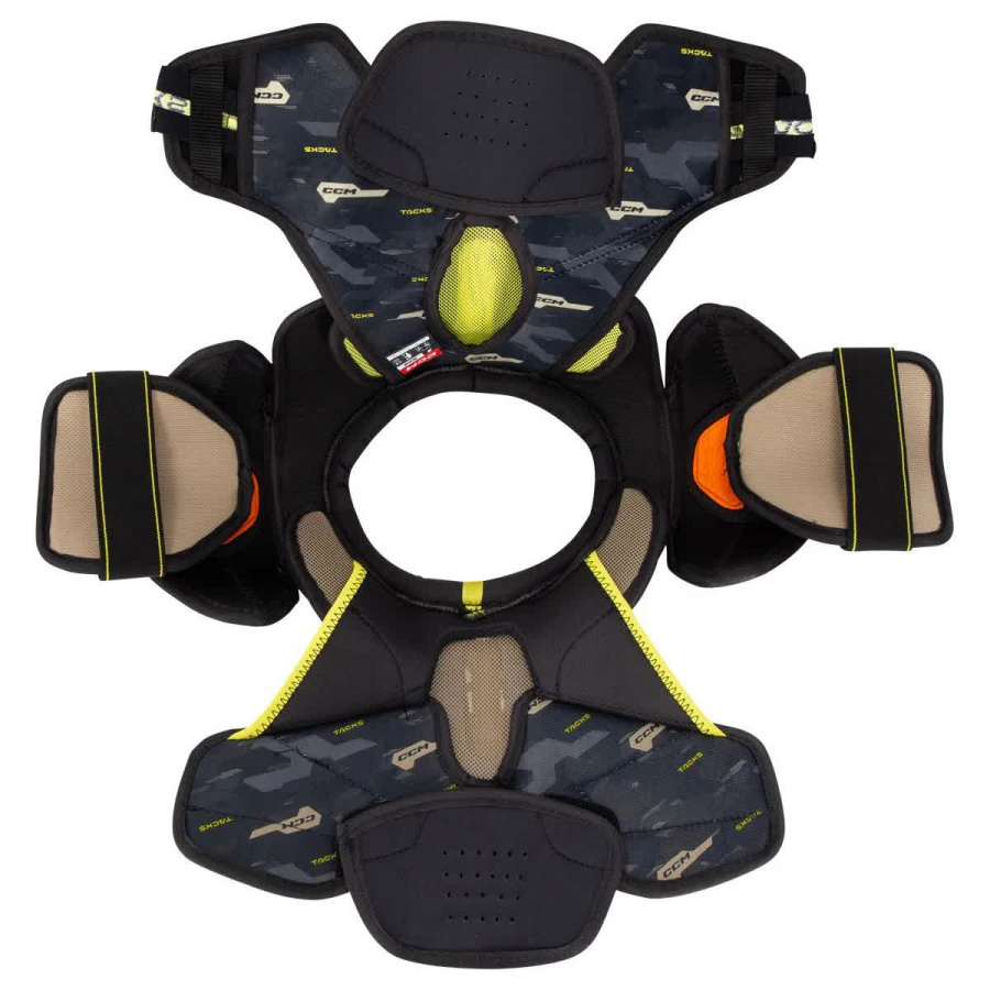 Хоккейный нагрудник 2022 CCM TACKS AS-V обеспечивают защиту профессионального уровня и плотную посадку, делая контроль клюшки более комфортным. Изготовленная из самых прочных материалов, новая анатомическая конструкция Anatomic Shield Design (ASD) надежно защищает игрока, позволяя сосредоточиться на игре. Хоккеист может выкладываться на полную, оставаясь при этом в прохладе, благодаря технологии Vent-tech