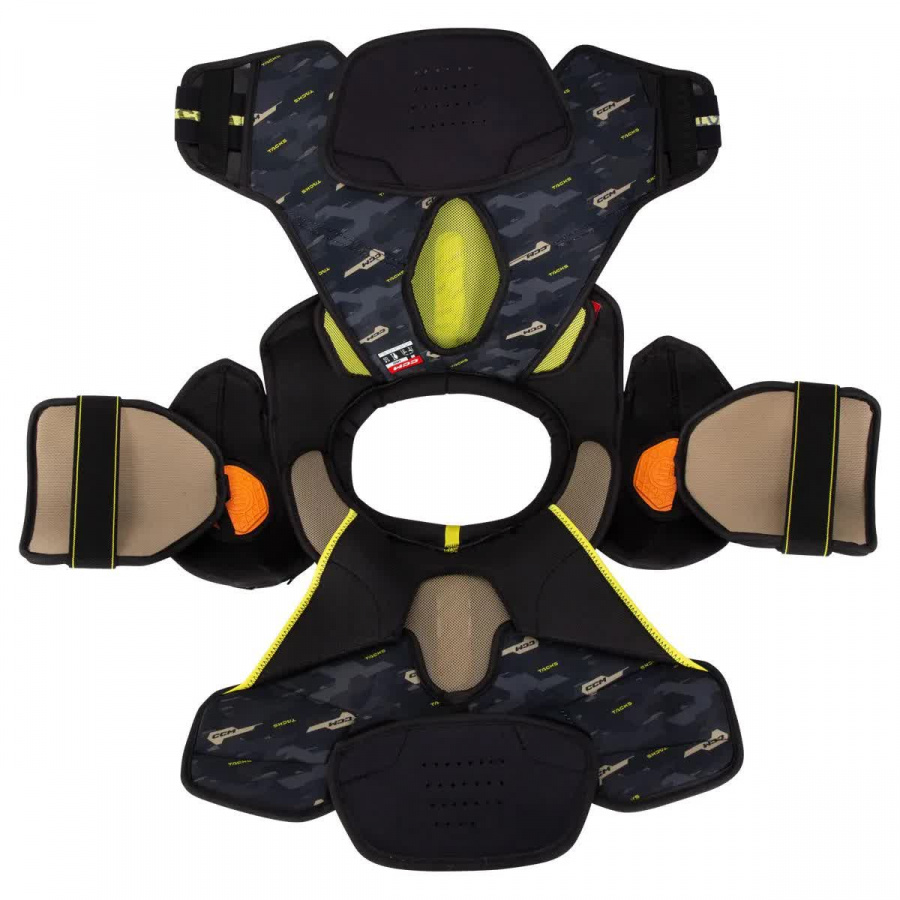 Хоккейный нагрудник 2022 CCM TACKS AS-V обеспечивают защиту профессионального уровня и плотную посадку, делая контроль клюшки более комфортным. Изготовленная из самых прочных материалов, новая анатомическая конструкция Anatomic Shield Design (ASD) надежно защищает игрока, позволяя сосредоточиться на игре. Хоккеист может выкладываться на полную, оставаясь при этом в прохладе, благодаря технологии Vent-tech