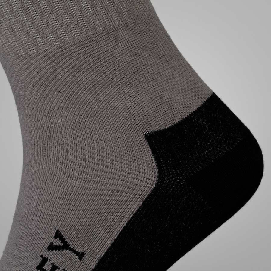 Удобные носки для хоккеистов MAD GUY Strike разработаны производителем специально для использования совместно с хоккейными ботинками. Модель выполнена в серой расцветке с черным логотипом производителя нанесенным на боковой поверхности, что обеспечивает стильный спортивный внешний вид. На голени, носки удерживаются при помощи эластичной резинки, которая обеспечивает прочную фиксацию. Пятка и мысок для усиления имеют двойную вязку. Носки надежно сидят в ботинке, не проскальзывают во время игры. Модель изготовлена из качественного трикотажа в состав, которого входит волокна полиэстера, что обеспечивает изделию высокую прочность, эластичность и износостойкость, трикотаж эластичный, хорошо держит форму, после деформаций возвращается в первоначальное положение. Высокая износостойкость обеспечивает длительную эксплуатацию. Ткань хорошо пропускает воздух, что обеспечивает вентиляцию внутреннего пространства. Носки отлично подойдут как начинающим, так и опытным хоккеистам.