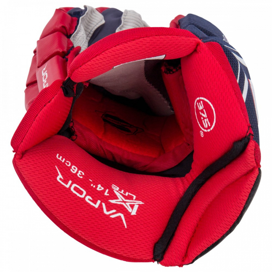 Перчатки хоккейные полевого игрока BAUER VAPOR 1X LITE S18 SR топовая модель в линейке Vapor сезона 2018 года отличается высоким уровнем защиты и отличной мобильностью. Зауженная посадка перчаток характеризуется более плотным прилеганием в области пальцев и тыльной части, при этом сохраняется свободная посадка в области манжеты, что обеспечивает большую подвижность руки в запястье. При изготовлении внешней отделки перчаток используется многожильная сетка Cable Mesh и высокопрочная, нейлоновая сетка Pro Nylon Mesh, что придает перчаткам высокую прочность и долговечность особенно в местах высокого износа и оптимальную гибкость там, где это необходимо. Тыльная часть разрезана на четыре защитных сегмента и в качестве защитного наполнения используется пена двойной плотности, которая усилена вставками из пластика. Указательный палец обладает максимальной подвижностью благодаря своей разрезке на три защитных сегмента. Остальные пальцы имеют по два защитных сегмента. В качестве защиты в области пальцев так же использ
