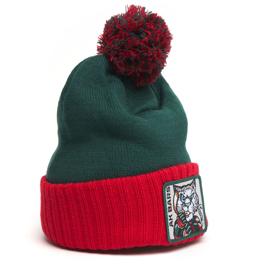 Шапка ХК АК БАРС с помпоном Производитель: Atributika&Club Размер: стандартный взрослый размер (обхват головы 55 - 58 см) Элементы: шапка с оригинальной вышивкой с изображением маскотов клубов. Материал 100% акрил Цвет: Зеленый.