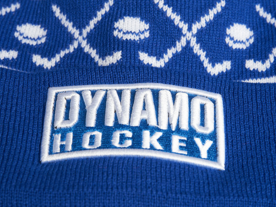 Шапка ХК Динамо Москва (подростковая) Производитель: Atributika&Club. Размер: подростковый размер (обхват головы 52 - 54 см). Материал: 100% акрил Цвет: Синий. Элементы: объемная вышивка.