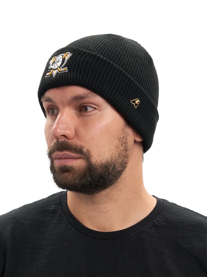 Классическая Шапка NHL Anaheim Ducks с отворотом. Производитель: Atributika&Club. Размер: стандартный взрослый размер (обхват головы 55 - 58 см). Состав: 100% акрил. Цвет: Чёрный. Элементы: объемная вышивка или полимерный шеврон с логотипом команды.
