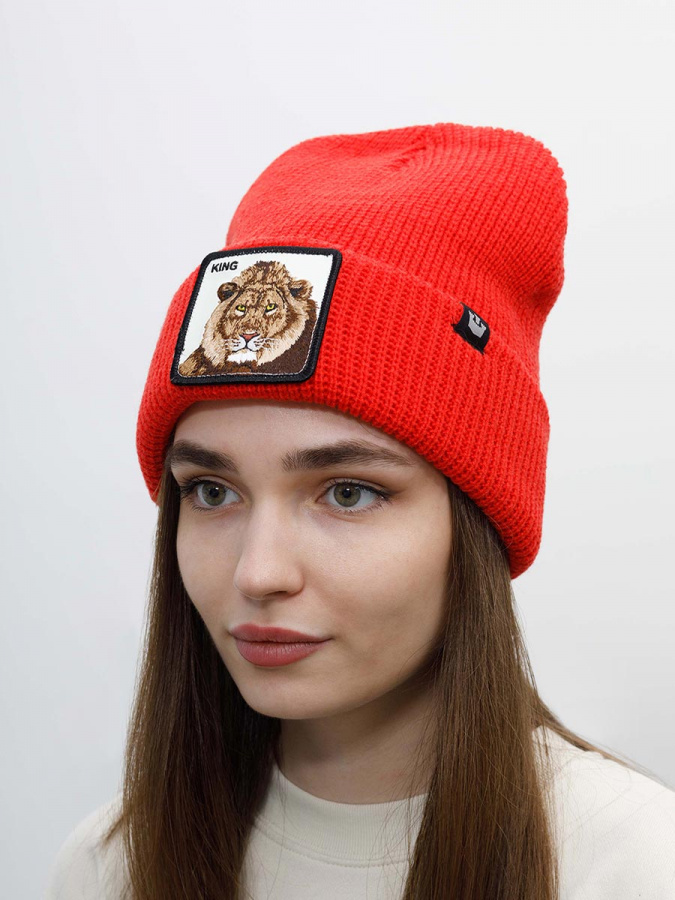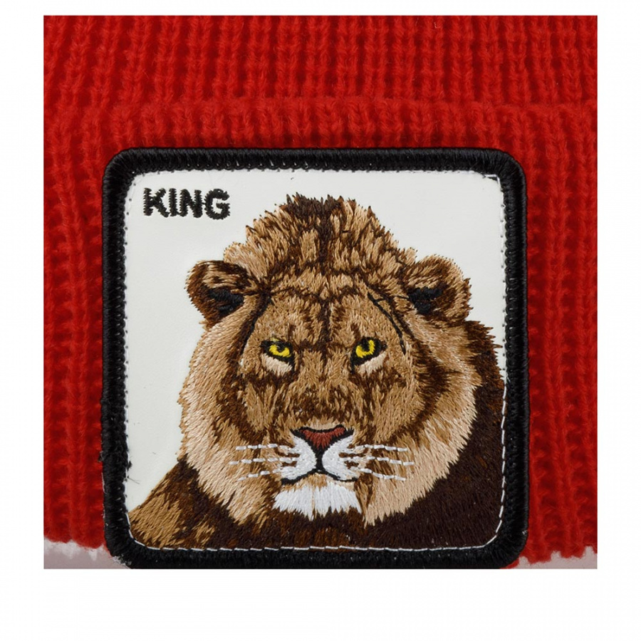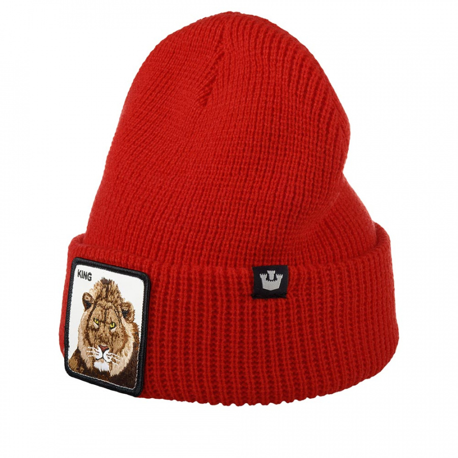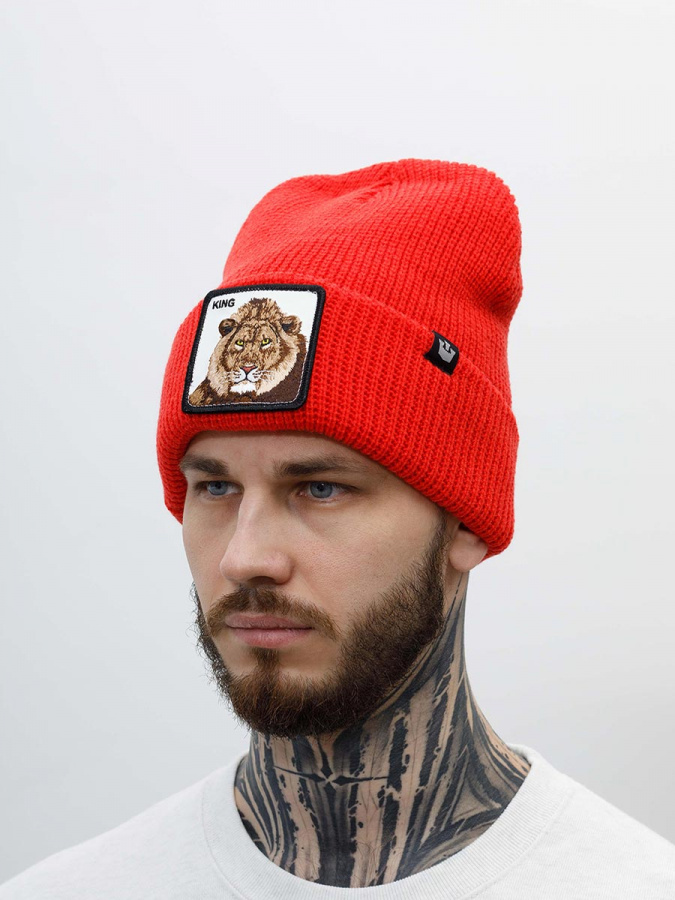 Двухслойная красная шапка бини Jungle Jangle со львом из культовой коллекции Animal Farm. Модель выполнена из ворсистого смесового материала, состоящего из акрила и шерсти. Вязка резинкой обеспечивает плотное прилегание головного убора. Спереди пришит патч из белой экокожи, на котором вышиты лев и надпись KING, что переводится как «царь, король». Также KING употребляется среди мужчин для того, чтобы выразить друг другу уважение. Шапку можно носить двумя способами: с отворотом и в расправленном виде. В таком случае патч прячется внутри, а по форме лаконичная модель больше напоминает шапку-носок. Ярлычок с логотипом в виде замка специально сделан таким образом, чтобы в обоих вариантах носки изображение не переворачивалось. Глубина шапки: с отворотом - 22 см, в развернутом виде - 30 см. Goorin Bros. - эпатаж в духе современной молодежи.