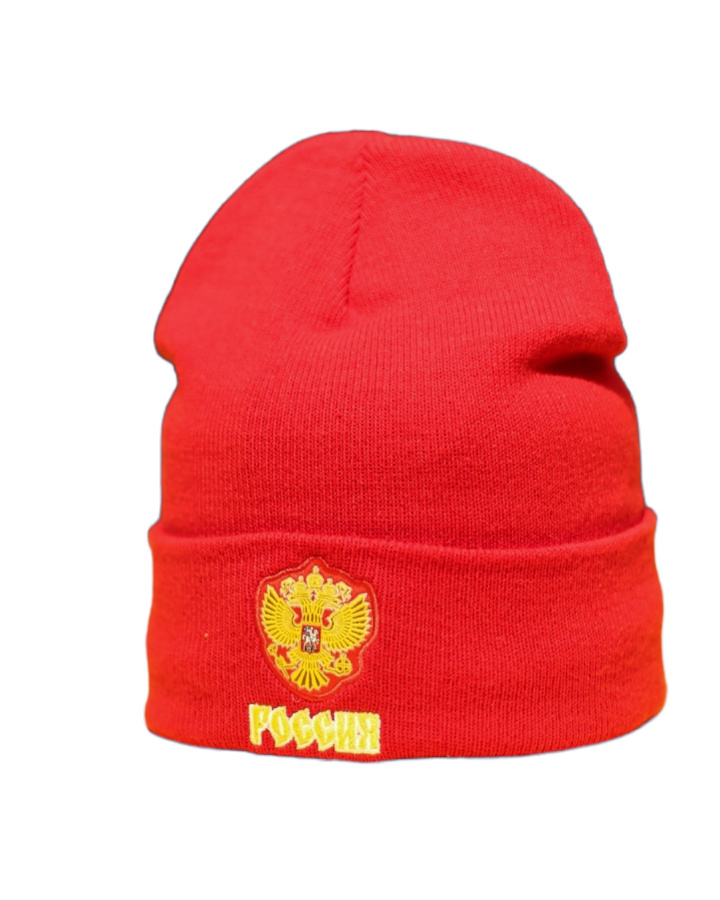 Трикотажная шапка с отворотом и подкладкой. Вышитая эмблема национальной сборной России по хоккею спереди и вышивка Mitchell & Ness сзади.