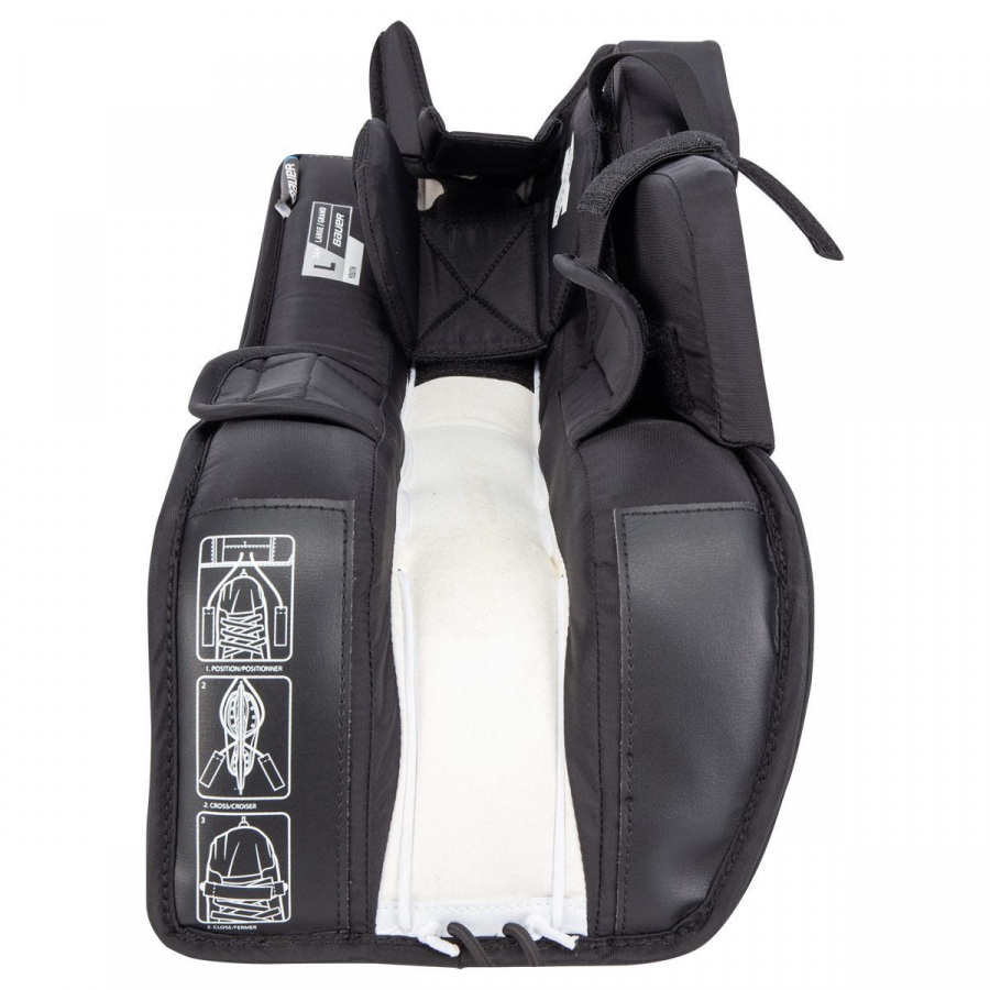 Лучшее соотношение технических и игровых характеристик в данной ценовой категории. Щитки имеют систему креплений TUNE FIT. Конструкция щитка с двумя изломами под коленом и над коленом, в сочетании с подвижной конструкцией в нижней части CONNECT FLEX 115, обеспечивает максимальный комфорт при передвижении. Щитки оснащены дополнительной защитой бедра, которая обеспечивает лучшую защиту верхней части колена вратаря, также ее можно легко отрегулировать или убрать.