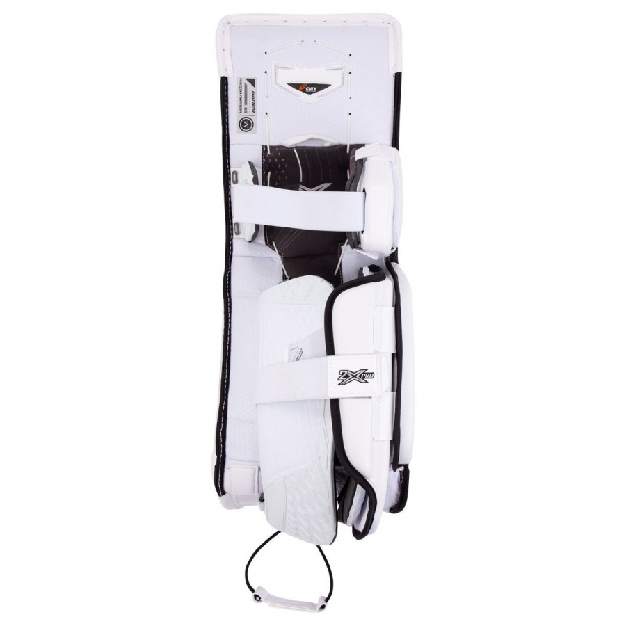 Щитки вратарские BAUER VAPOR 2X PRO S19 SR топовая модель, новинка сезона 2019 года. Внешняя отделка щитков выполнена из нового материала COR Tech ST, что придает щиткам отличную прочность и долговечность. Графика на фронтальной поверхности обеспечивает высокое качество и прочность. Щитки имеют два излома, располагающиеся выше и ниже колена, что придает щиткам отличную гибкость. Плотная и жесткая внешняя поверхность щитков дает возможность выполнять длинные и быстрые скольжения. Вставка из композитного материала Curv внутри щитка в районе бедра обеспечивает лучшее прилегание, эффективную и легкую защиту. Боковой профиль щитка имеет тонкий дизайн, который был реализован для уменьшения общего веса щитка. Поверхность скольжения с внутренней стороны имеет тонкий профиль, который содержит стратегические вырезы для снижения веса и создания поверхности с низким коэффициентом трения для самых быстрых скольжений. Канал для колена выстлан синтетической замшей AX Suede Quattro, которая обладает высокой износостойкостью
