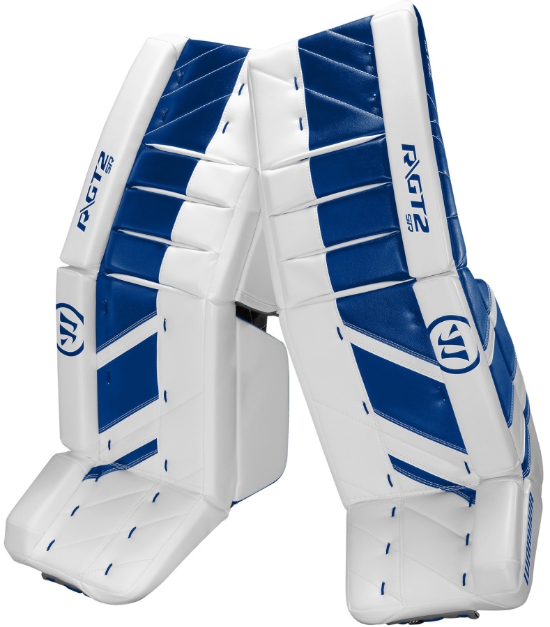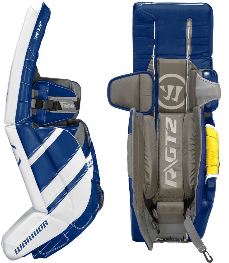 Щитки вратарские WARRIOR RITUAL GT2 SR модель полупрофессионального уровня, новинка сезона 2019 года, второе поколение линейки Ritual GT. Модель отличается высокими защитными свойствами и создана для вратарей, играющих в гибридном стиле. Традиционно, трехрольная конструкция была разработаны для обеспечения дополнительного изгиба в щитке, кроме того в данной модели есть стратегические изломы во внутреннем сердечнике, которые создают изгиб щитка выше секции колена. Во внутреннем сердечнике есть два излома выше и ниже колена, которые придают щитку изогнутую форму, чтобы облегчить вратарю опускание в позицию бабочка. Такая конструкция профиля позволяет улучшить баланс щитка при перемещении и опускании в позицию «бабочка», а так же уменьшает вес щитка. Жесткое, внутреннее наполнение фронтальной части щитков обеспечивает предсказуемый отскок шайбы и превосходное перераспределение энергии. Щитки имеют плоскую, внутреннюю конструкцию кромок, где вспененный материал канала для ноги соединяется со льдом, что способству
